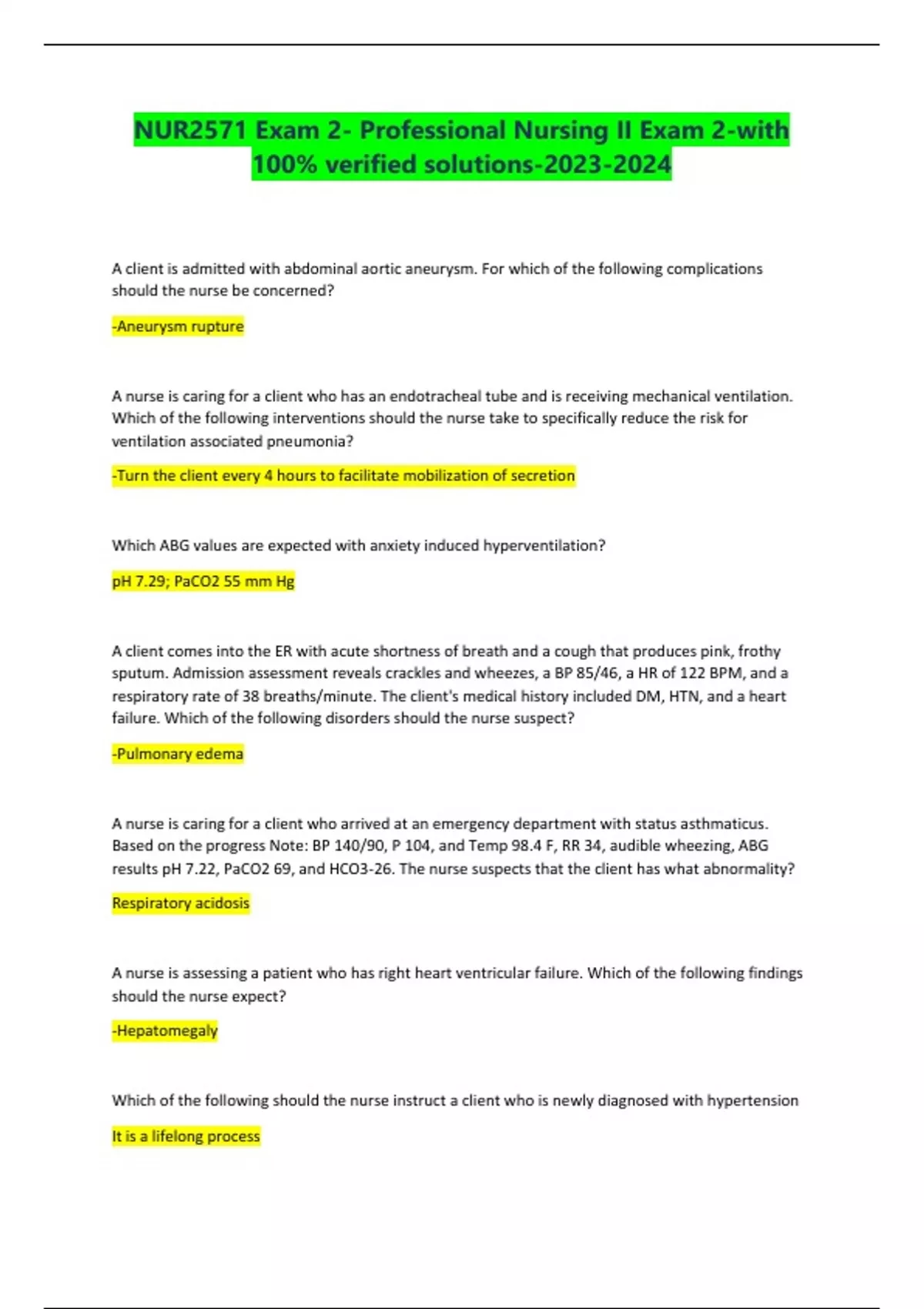 ACTUAL NUR2571 Exam 2- Professional Nursing II Exam 2-with 100% verified solutions-