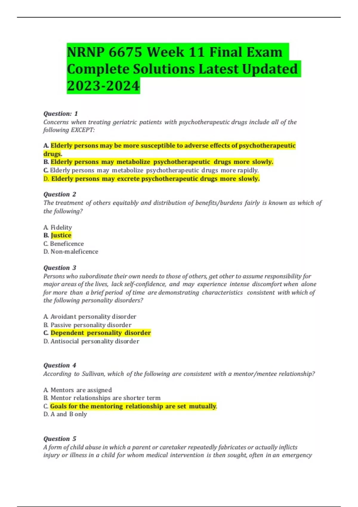 NRNP 6675 Week 11 Final Exam Complete Solutions Latest Updated Bundle