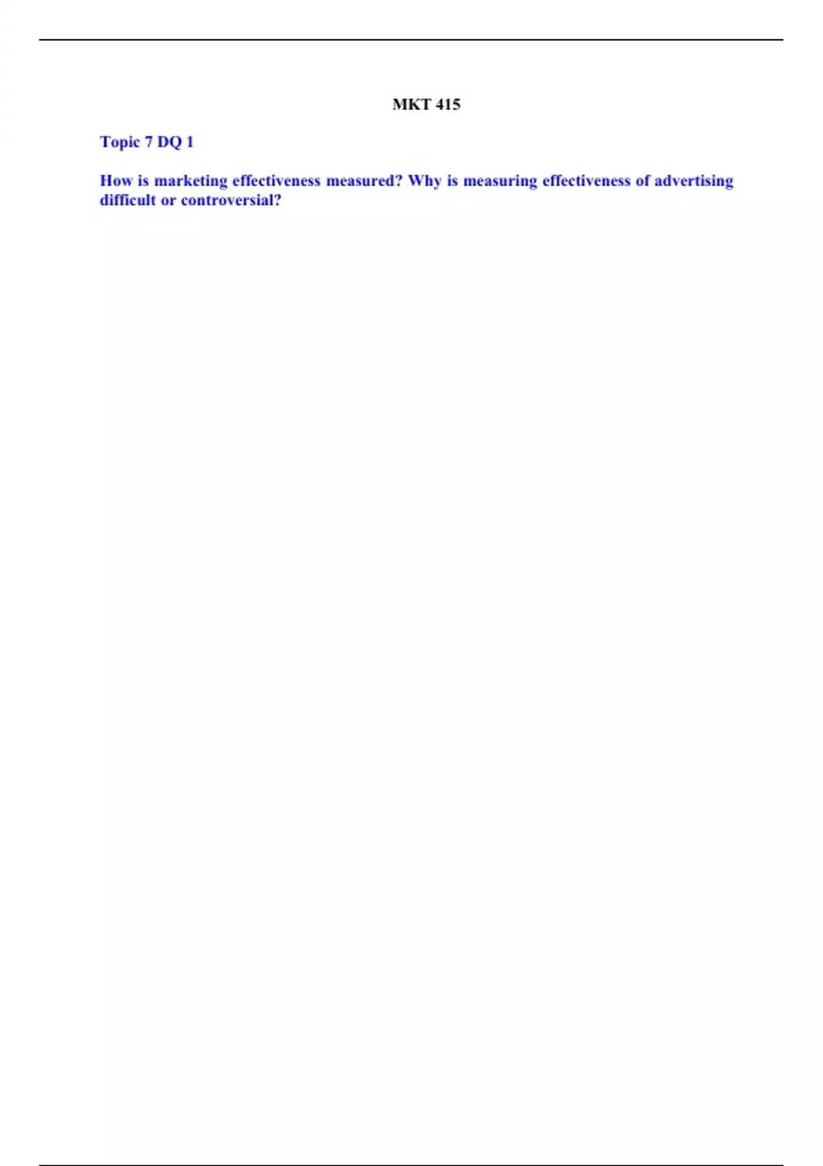 MKT 415 All DQs Topic 1 - 8 (Package Deal)