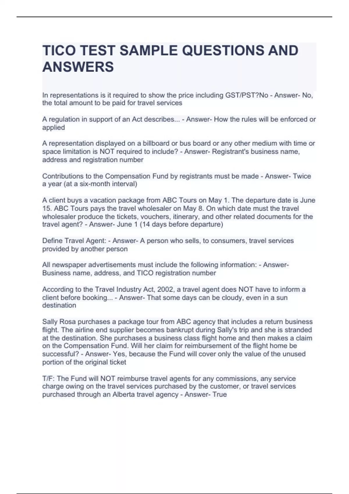 TICO TEST SAMPLE QUESTIONS AND ANSWERS