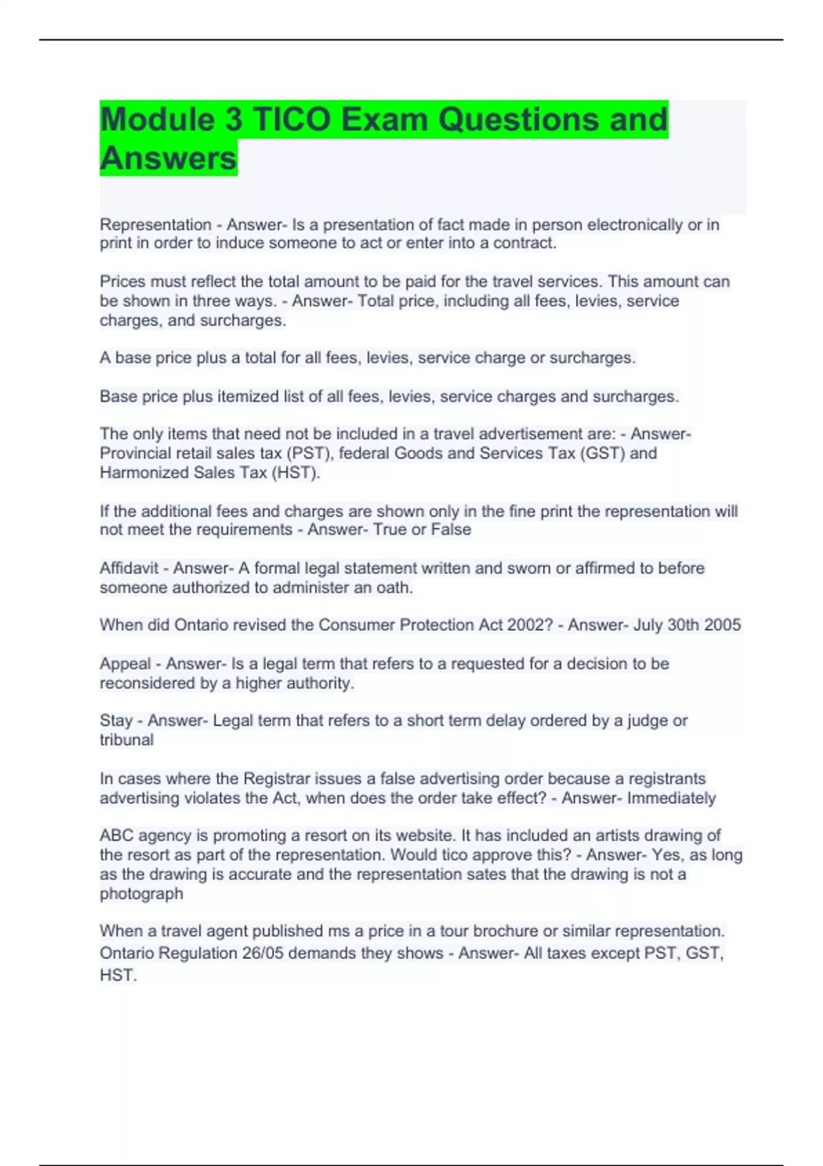 TICO Exam Bundle (Full pack solution) Graded A