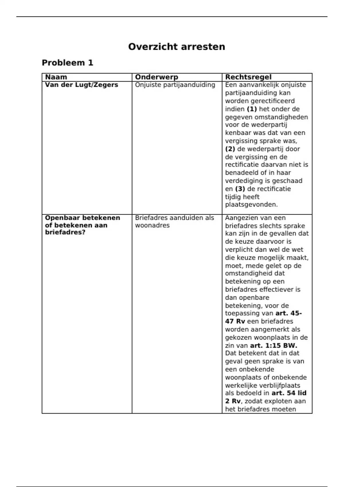 Schematisch overzicht van alle jurisprudentie van Burgerlijk procesrecht waarbij het onderwerp en de rechtsregel wordt uitgewerkt.