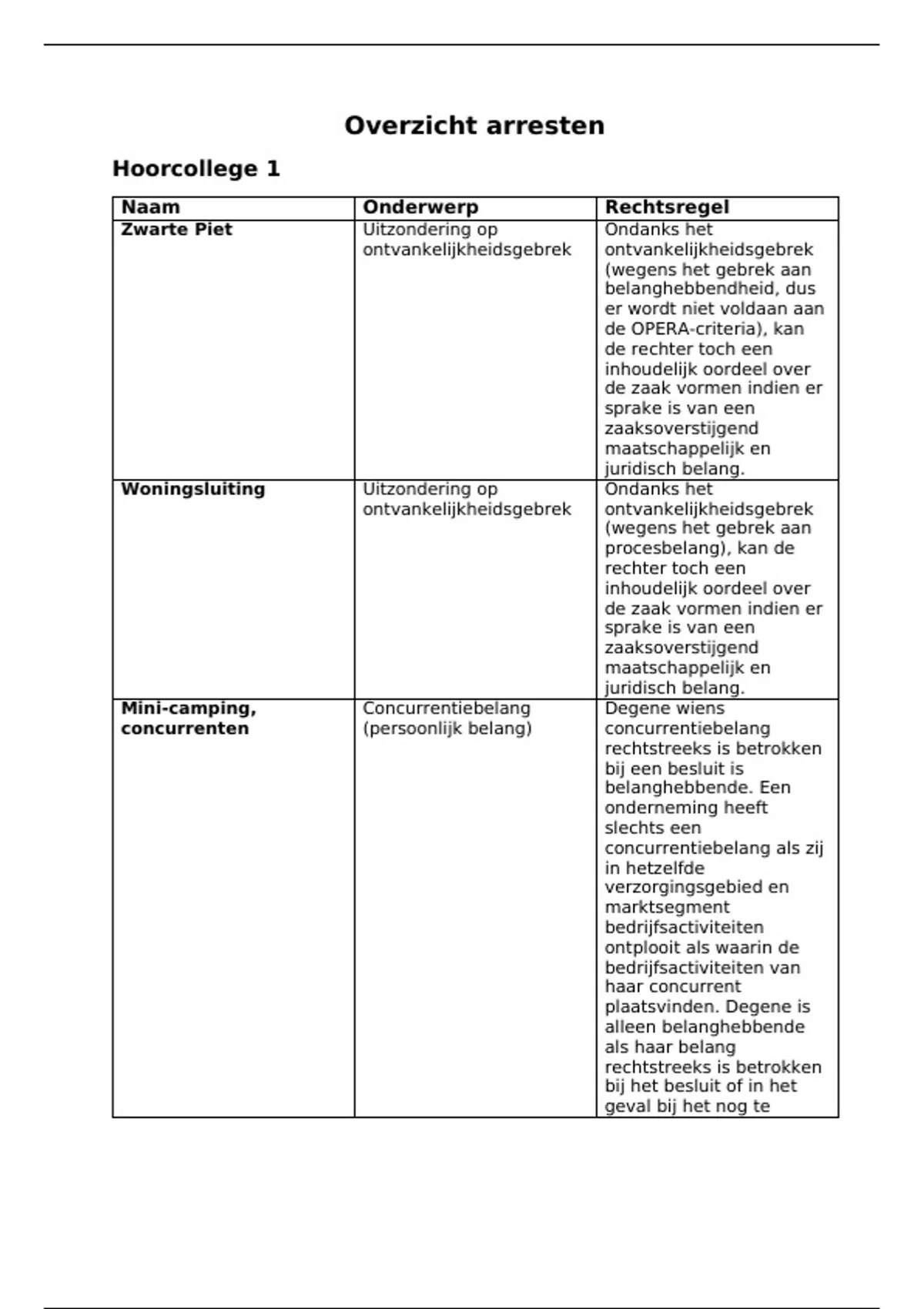 Schematisch overzicht van alle jurisprudentie ingedeeld per onderwerp met de rechtsregel uitgewerkt.