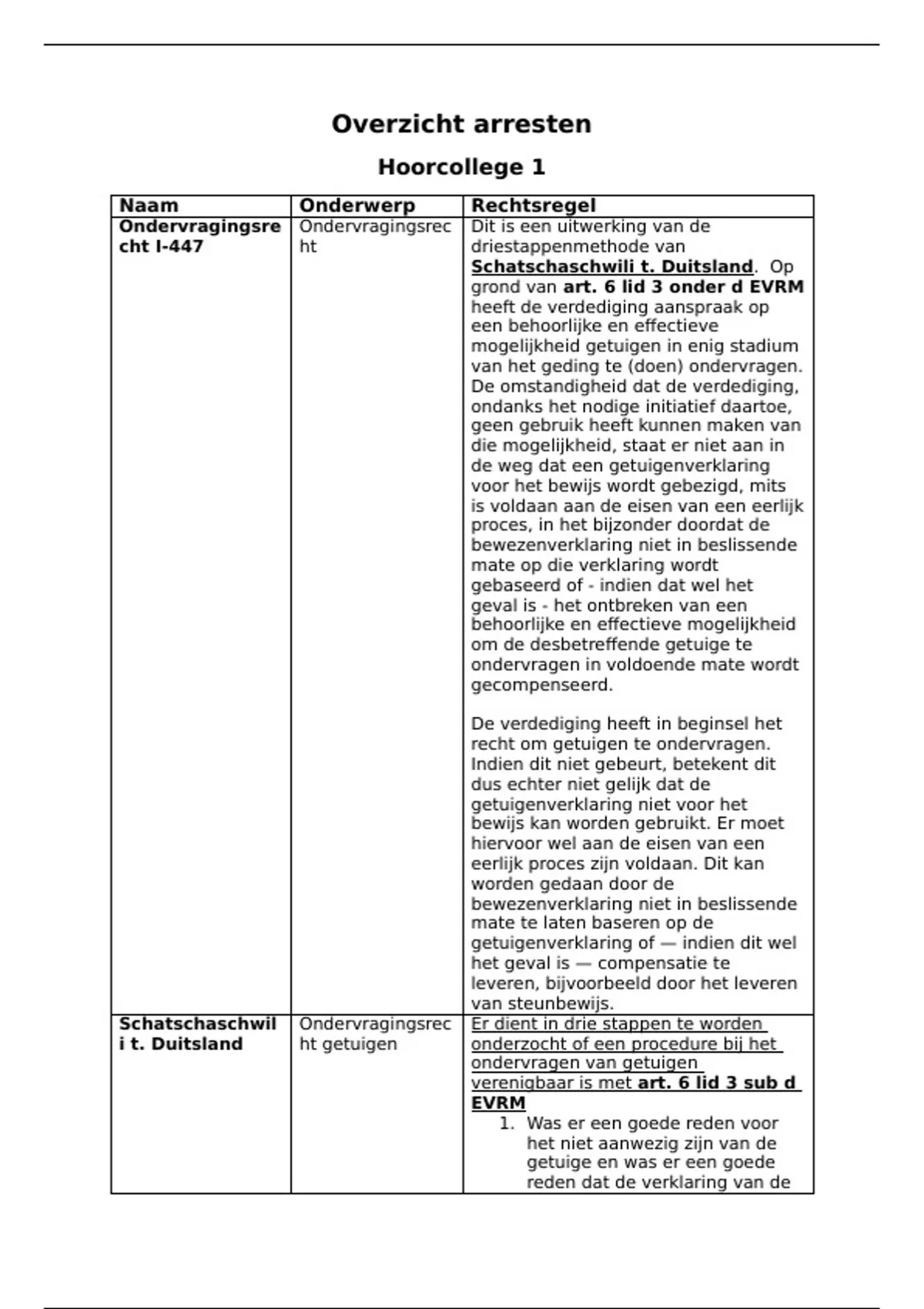 Een schematisch overzicht met alle jurisprudentie die staat voorgeschreven voor de hoorcolleges en de onderwijsgroepen, met de rechtsregel uitgewerkt.