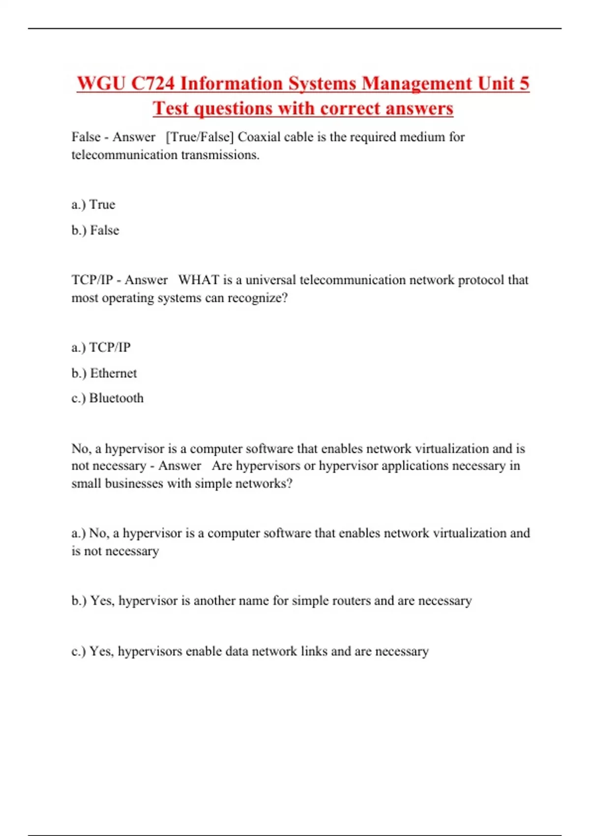 WGU C724 Information Systems Management Unit 5 Test questions with correct answers