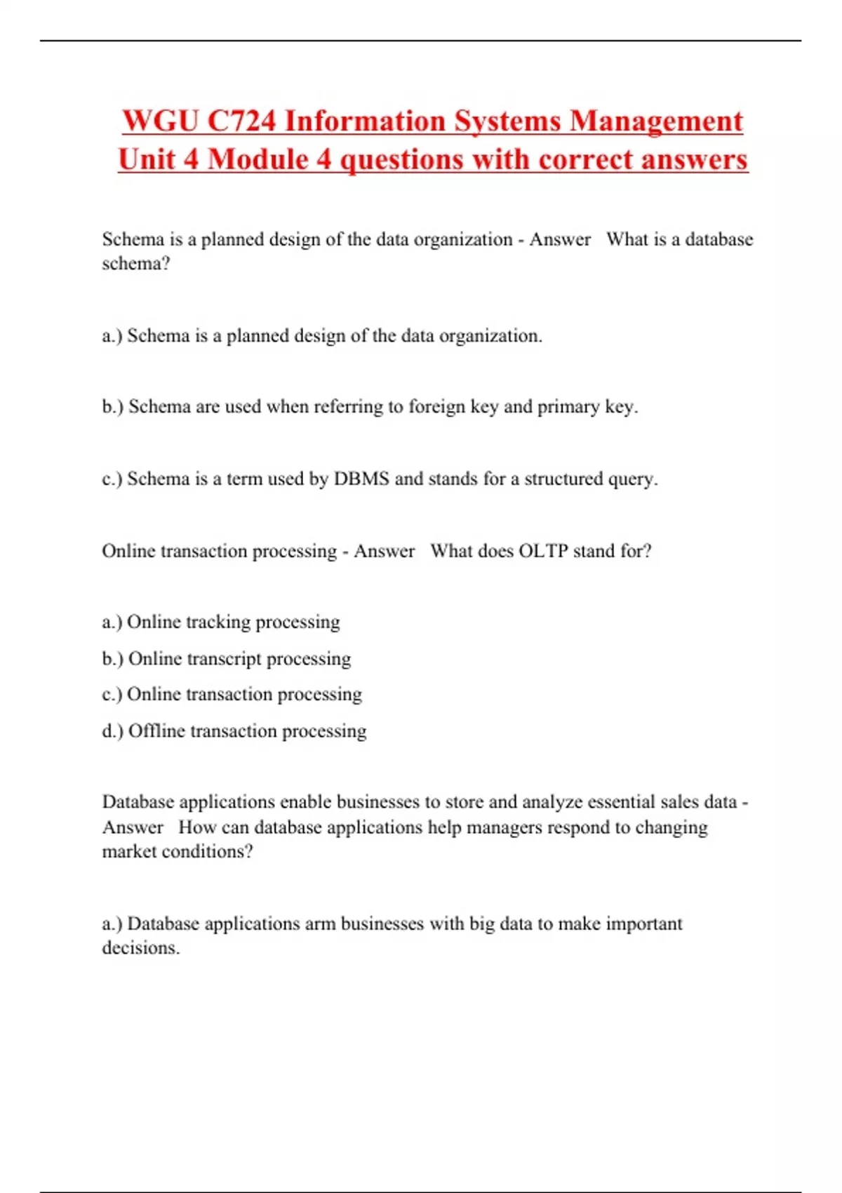 WGU C724 Information Systems Management Unit 4 Module 4 questions with correct answers