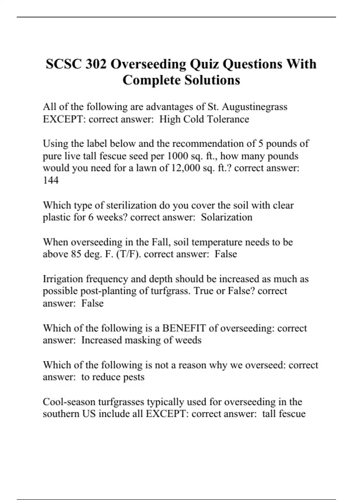 scsc 302 overseeding quiz questions with complete