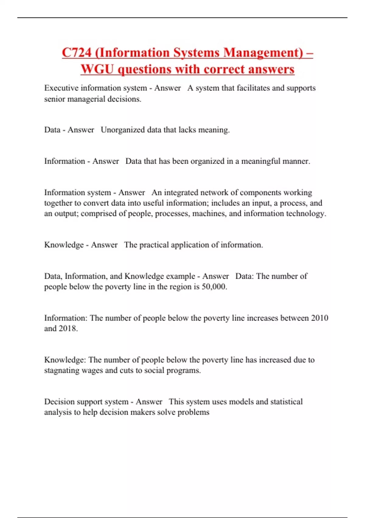 C724 (Information Systems Management) – WGU questions with correct answers