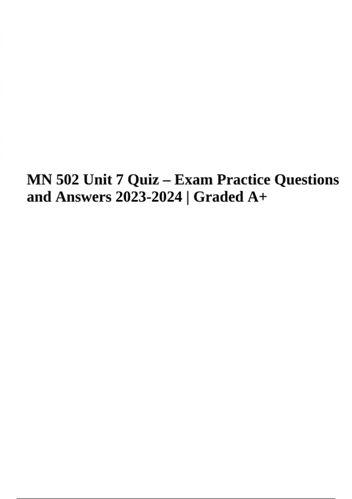 MN 502 Unit 7 Quiz Exam Practice Questions and Answers 2023/2024 Graded A+