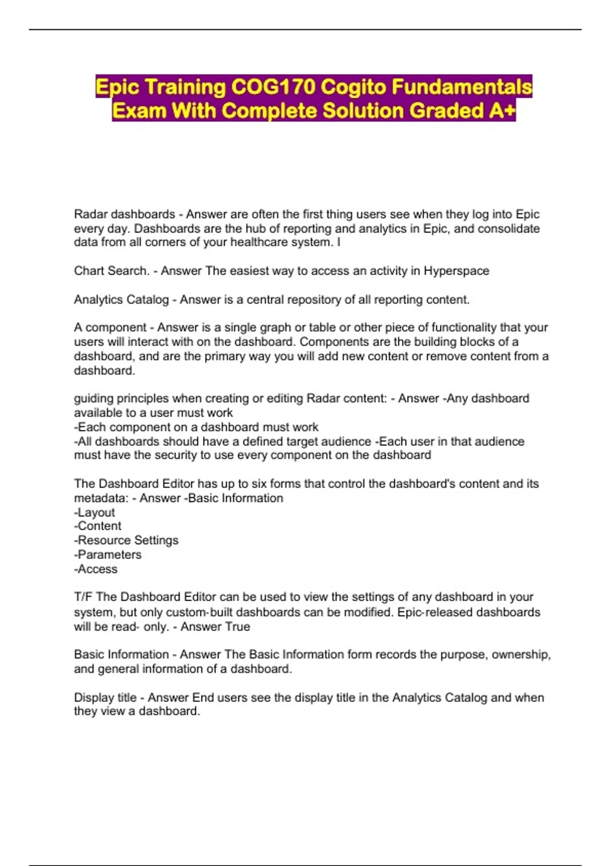 Epic training cog170 cogito fundamentals exam with complete solution Graded A