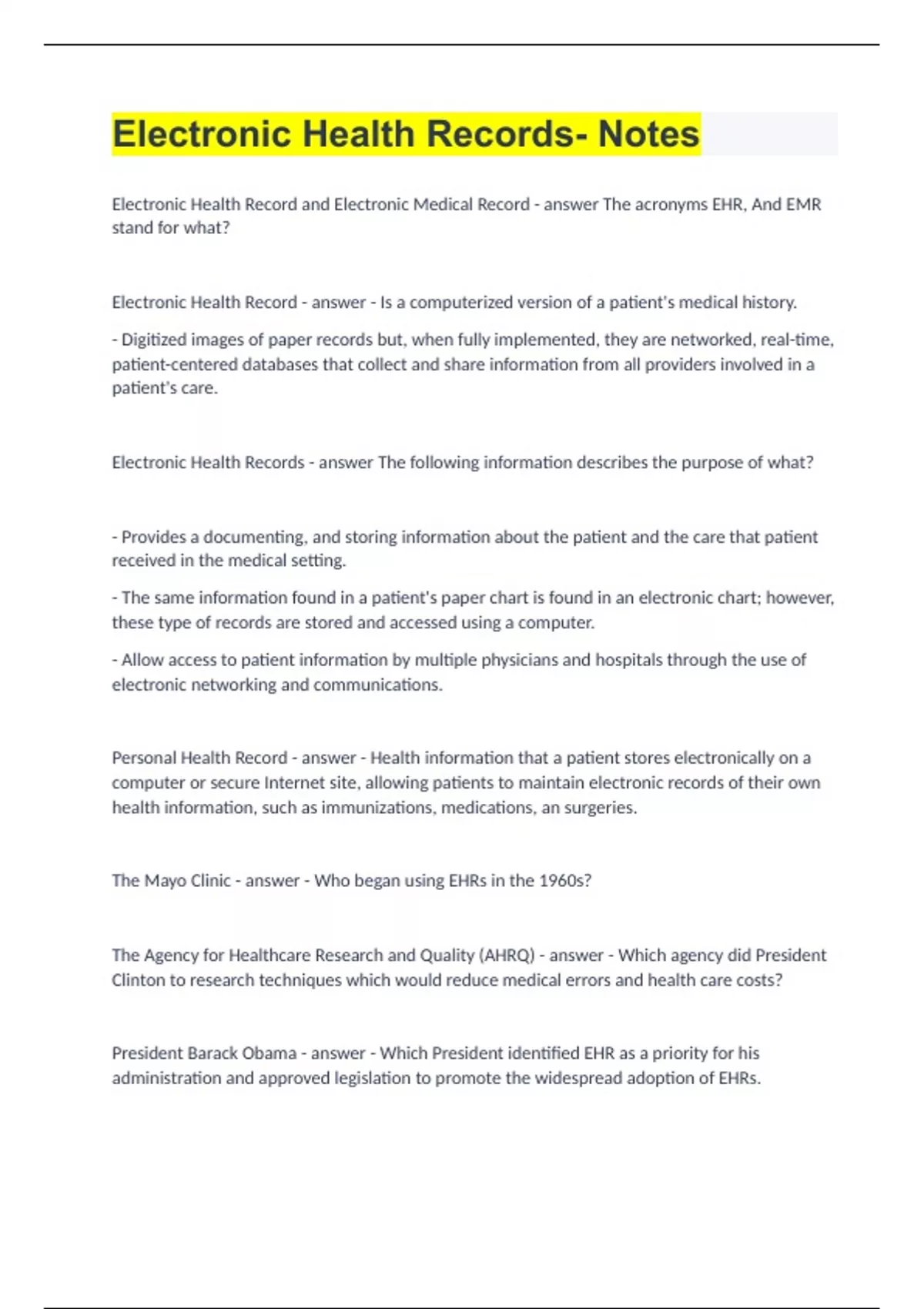 Electronic Health Records- Notes