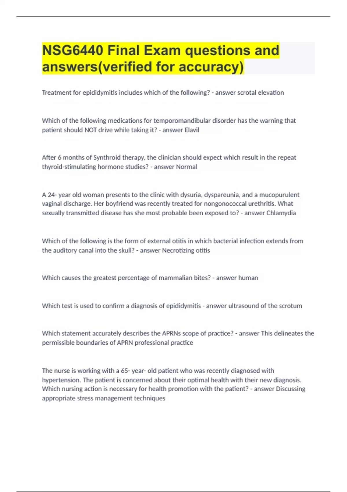 nsg6440 final exam questions and answersverifie