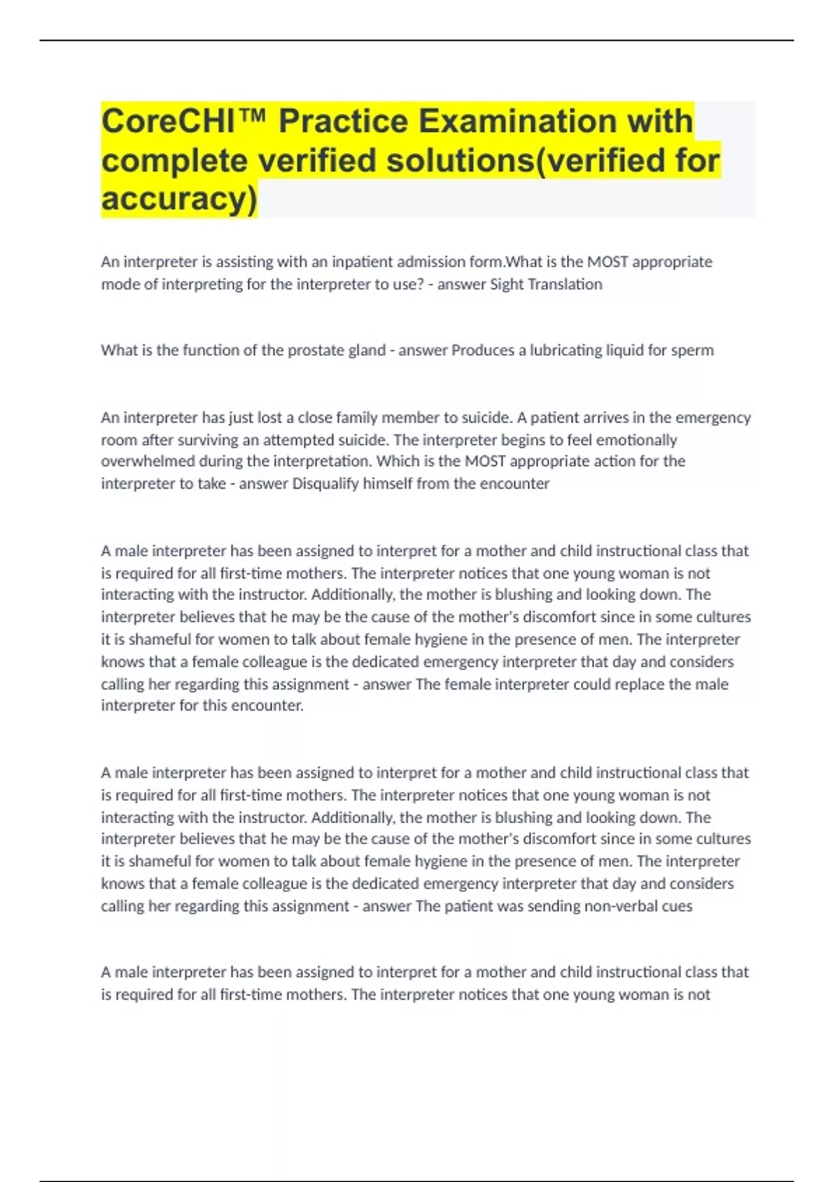 CoreCHI™ Practice Examination with complete verified solutions(verified for accuracy)