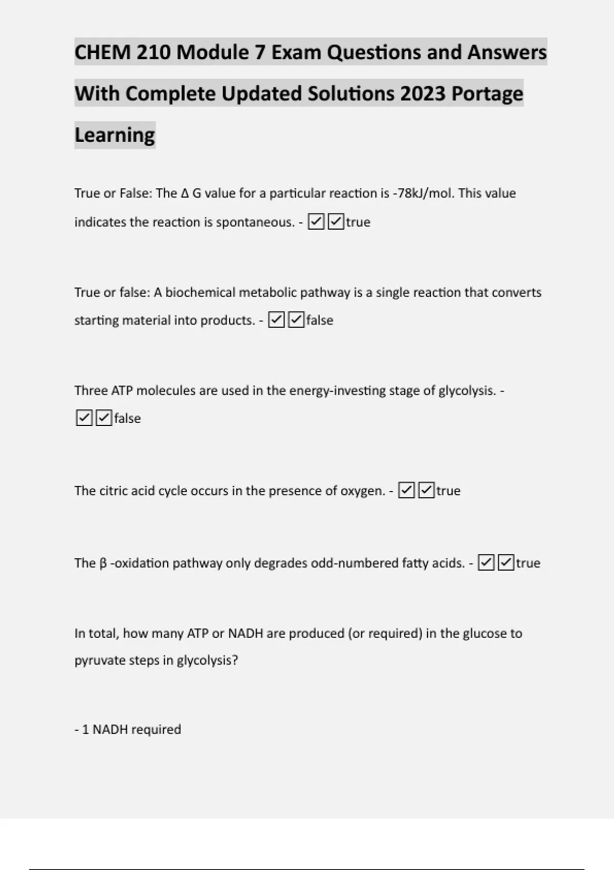 CHEM 210 Module 7 Exam Questions and Answers With Complete Updated Solutions 2023 Portage Learning