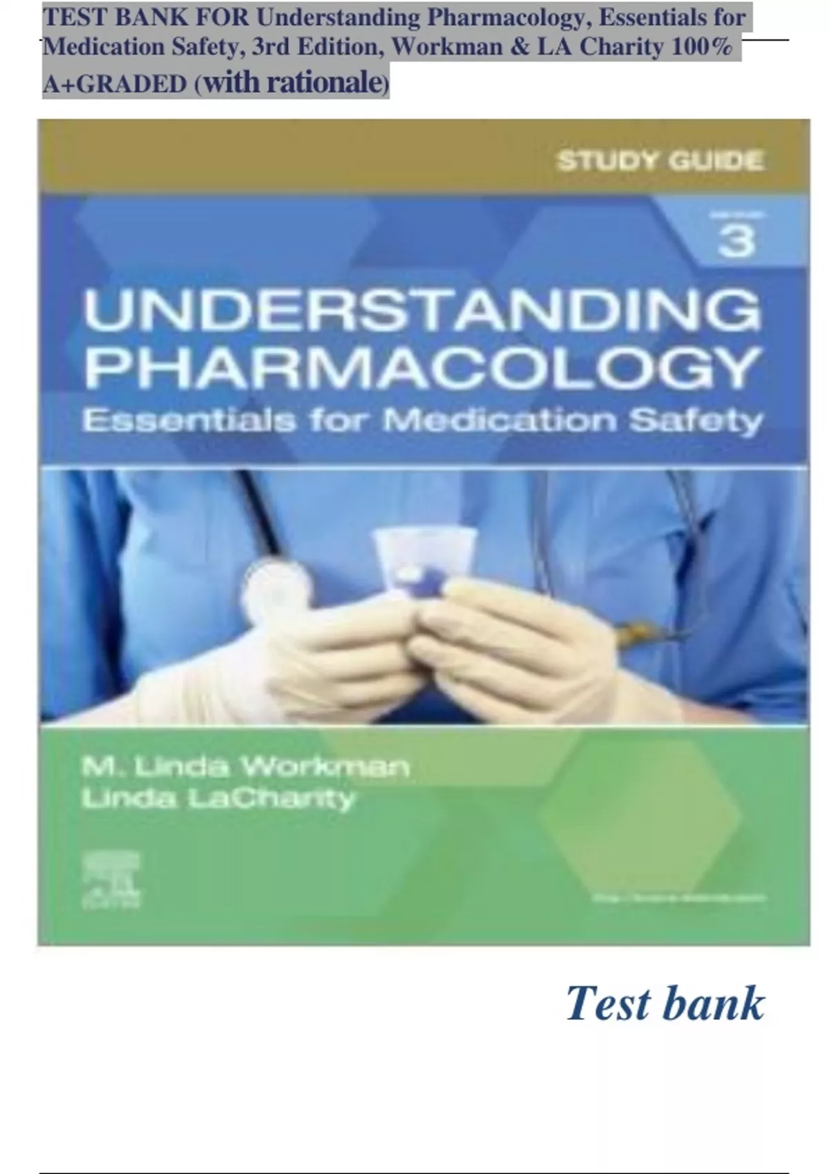 TEST BANK FOR Understanding Pharmacology, Essentials for Medication Safety, 3rd Edition, Workman & LA Charity 100% A+ GRADED (with rationale) Latest edition 2024