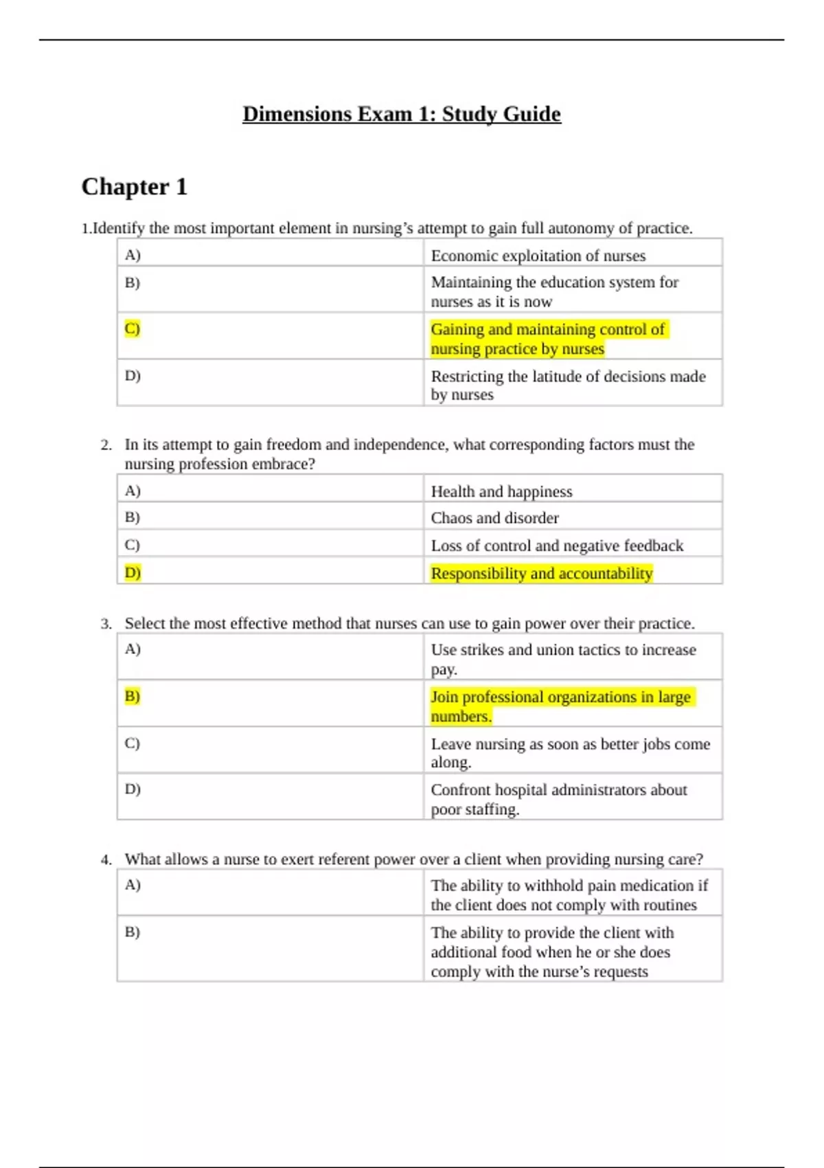 1.Identify the most important element in nursing’s attempt to gain full autonomy of practice.