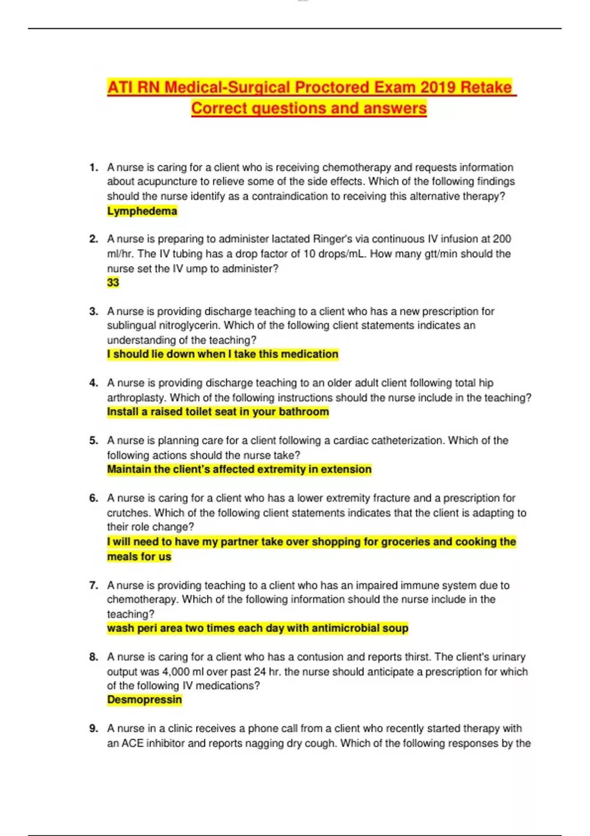 ATI RN Medical-Surgical Proctored Exam 2019 Retake Correct questions and answers