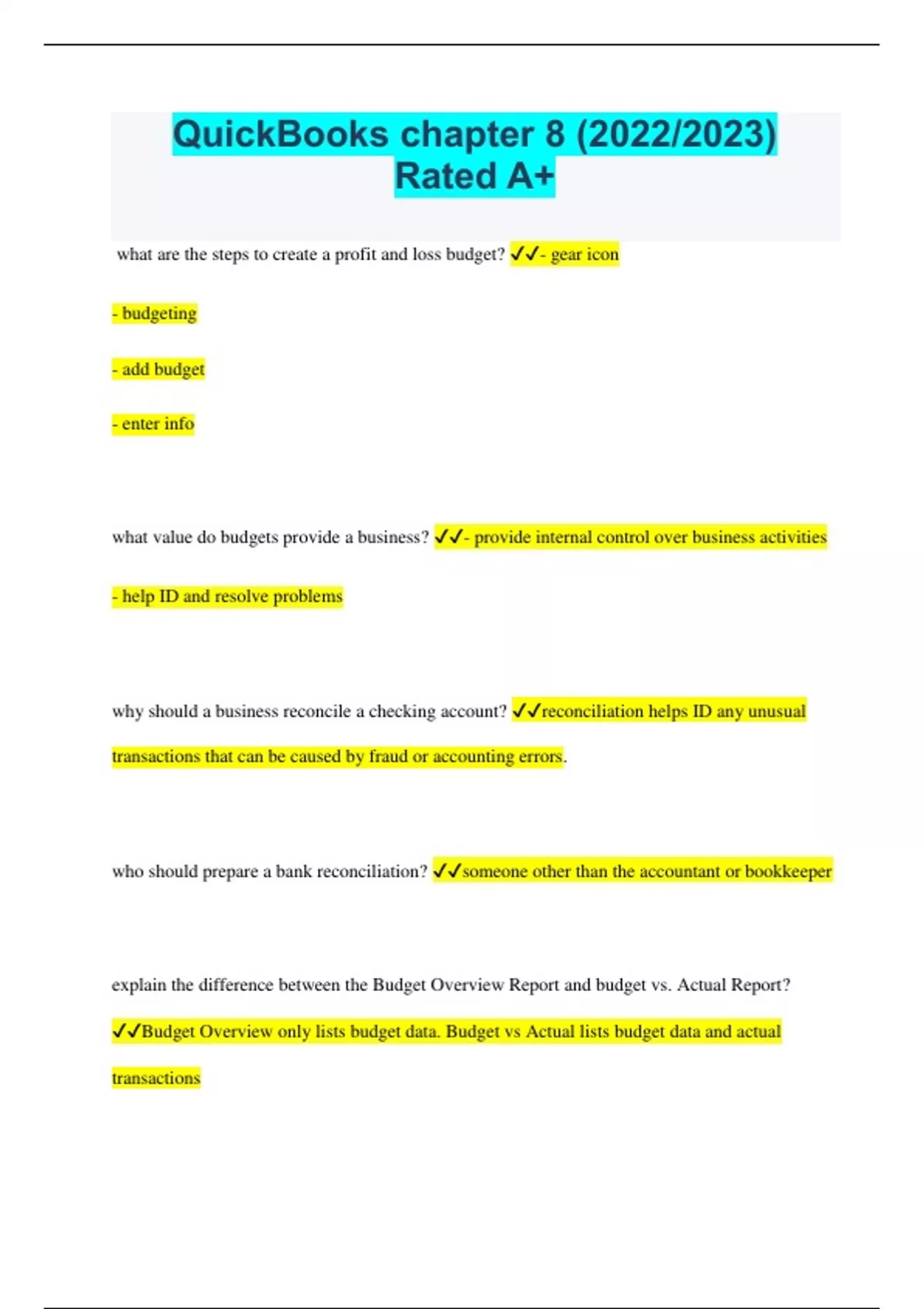 QuickBooks chapter 8 (2023/2024) Rated A+