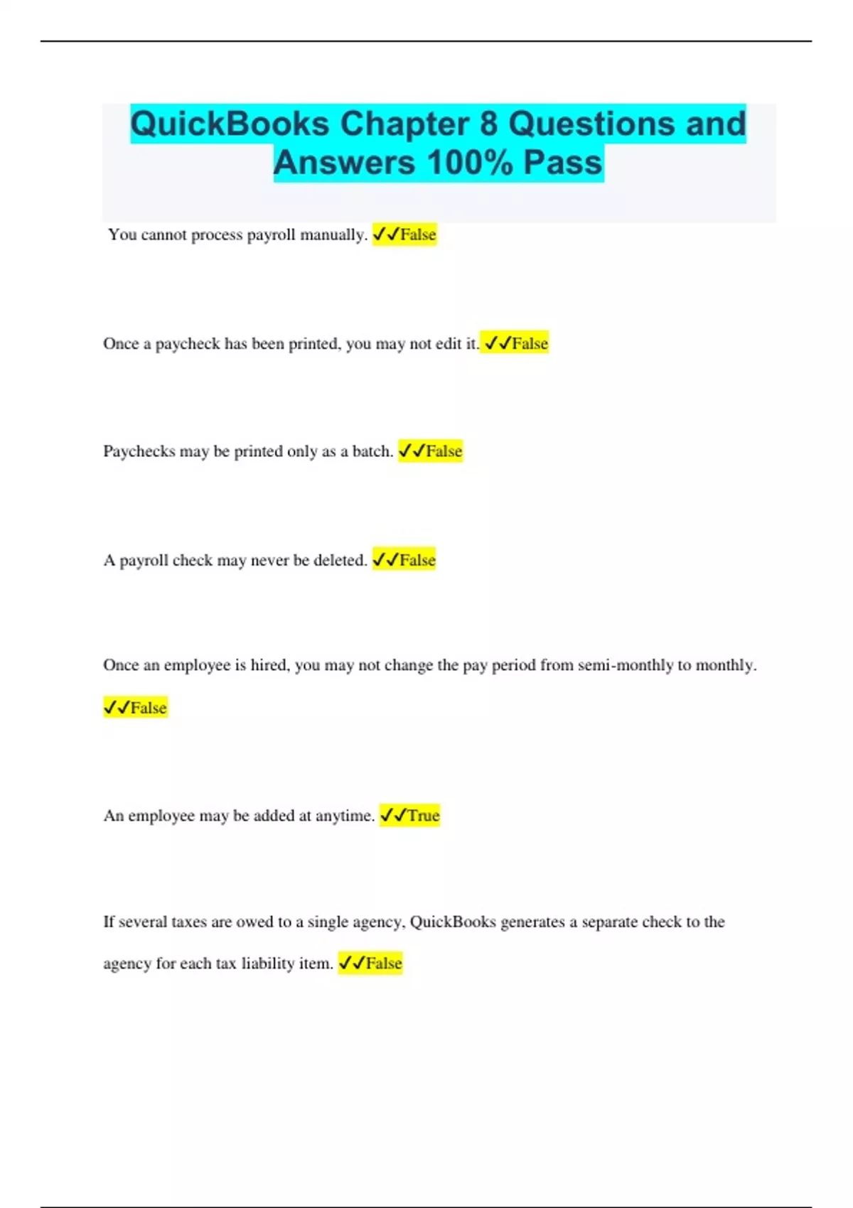 QuickBooks Chapter 8 Questions and Answers 100% Pass