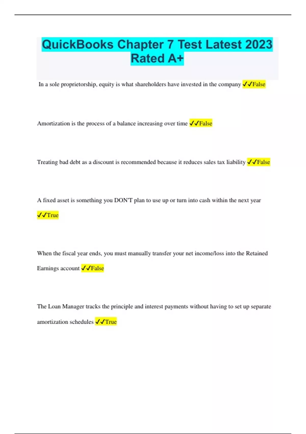 QuickBooks Chapter 7 Test Latest 2023 Rated A+