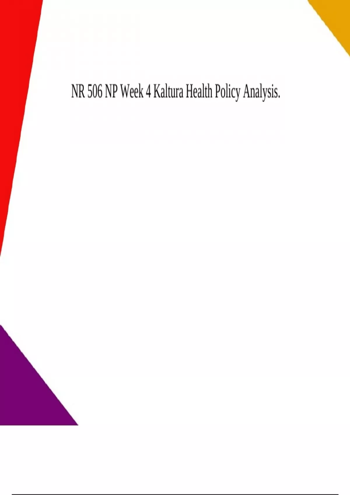nr 506 np week 4 kaltura health policy analysis