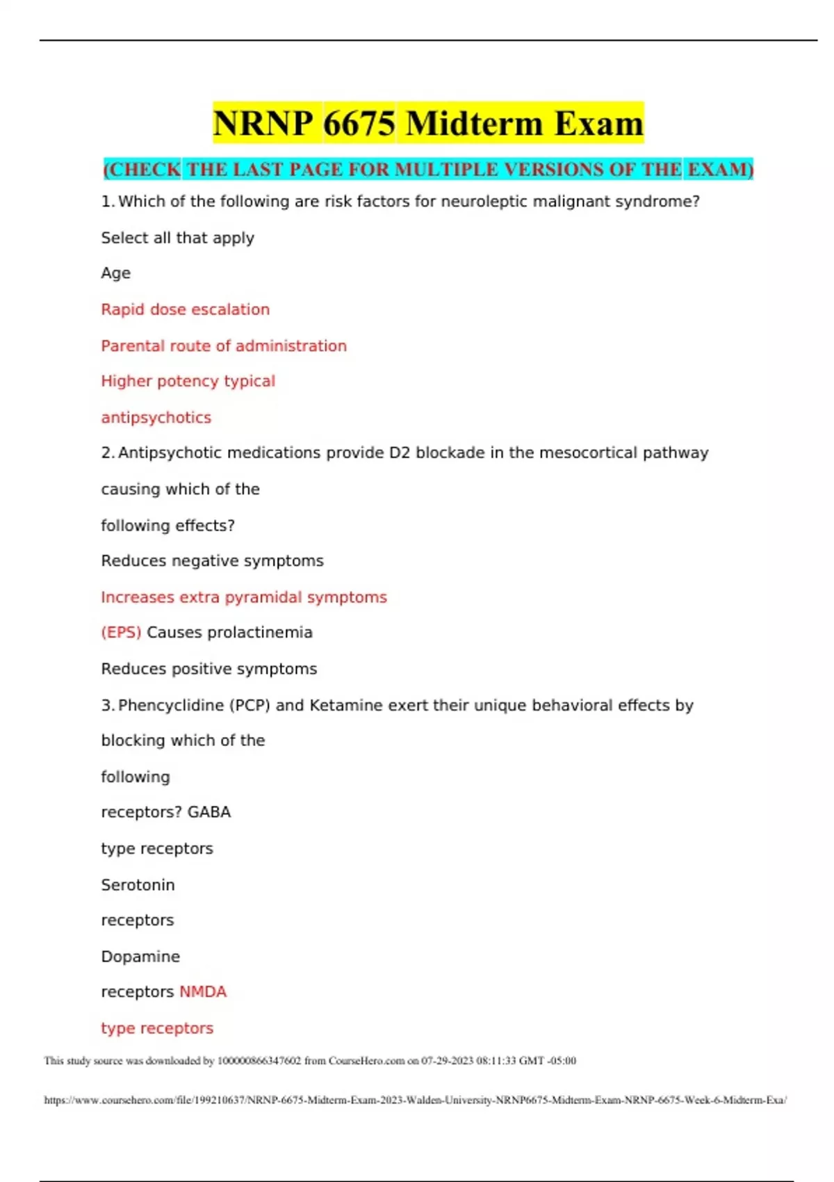 NRNP 6675 Week 6 Midterm Exam 2023 Questions and Answers (Verified Answers) NRNP 6675 Week 6 Midterm Exam 2023 Questions and Answers (Verified Answers)