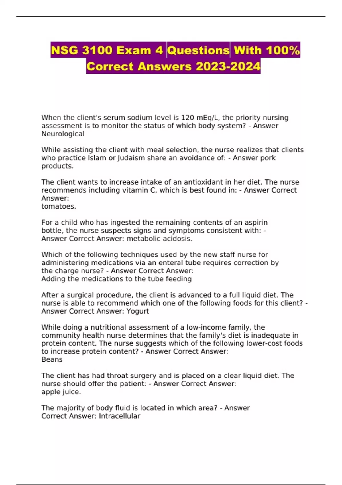 NSG 3100 Exam 4 Questions With 100% Correct Answers
