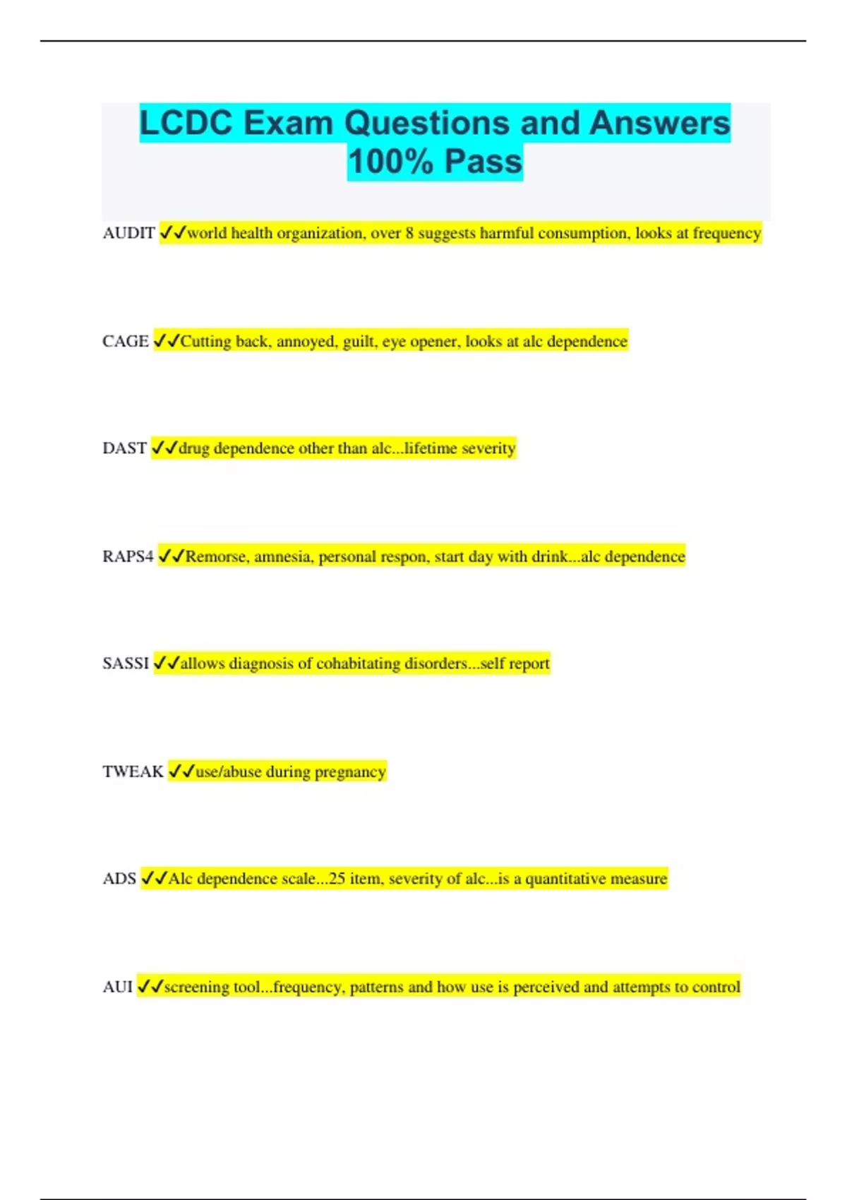 LCDC Exam Questions and Answers 100% Pass