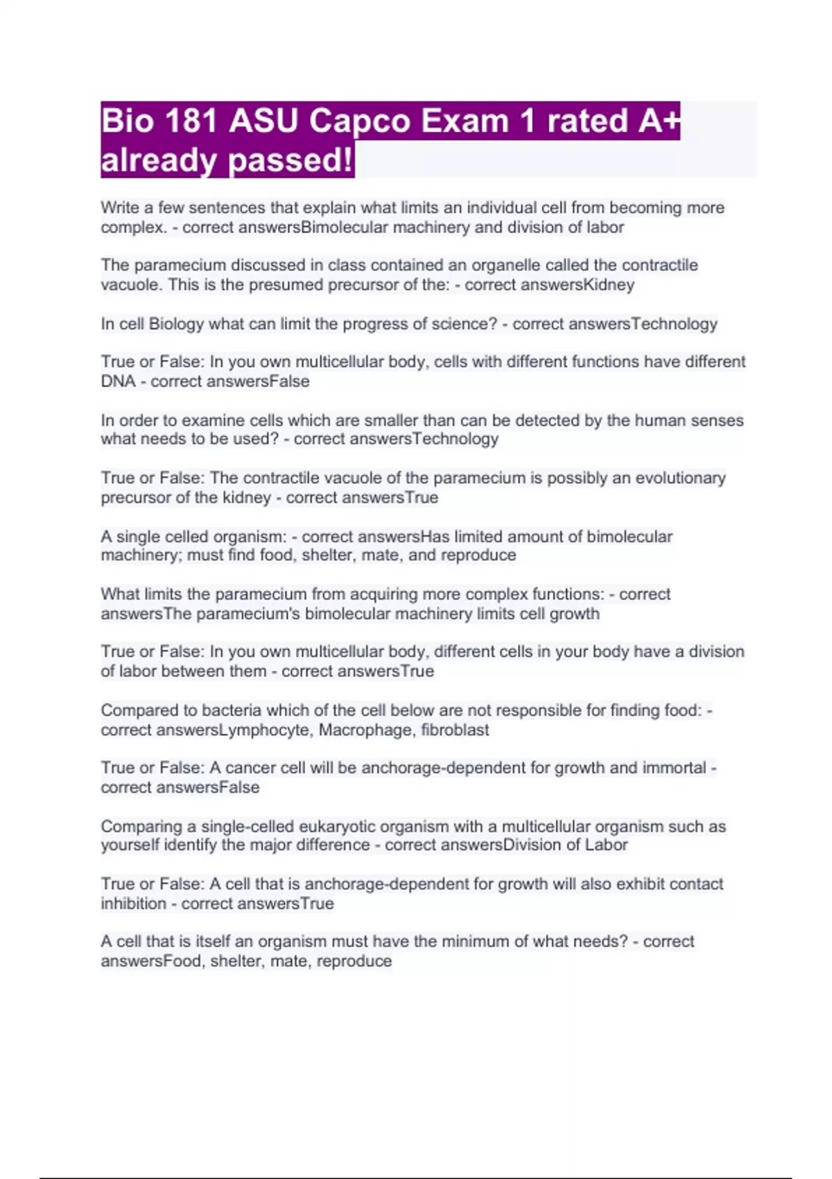 Bio 181 ASU Capco Exam With Answers Graded A+