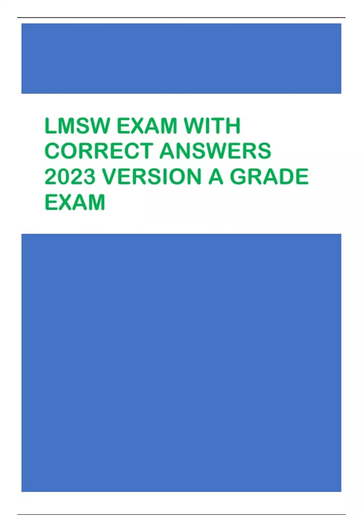 LMSW EXAM WITH CORRECT ANSWERS 2023 VERSION A GRADE EXAM