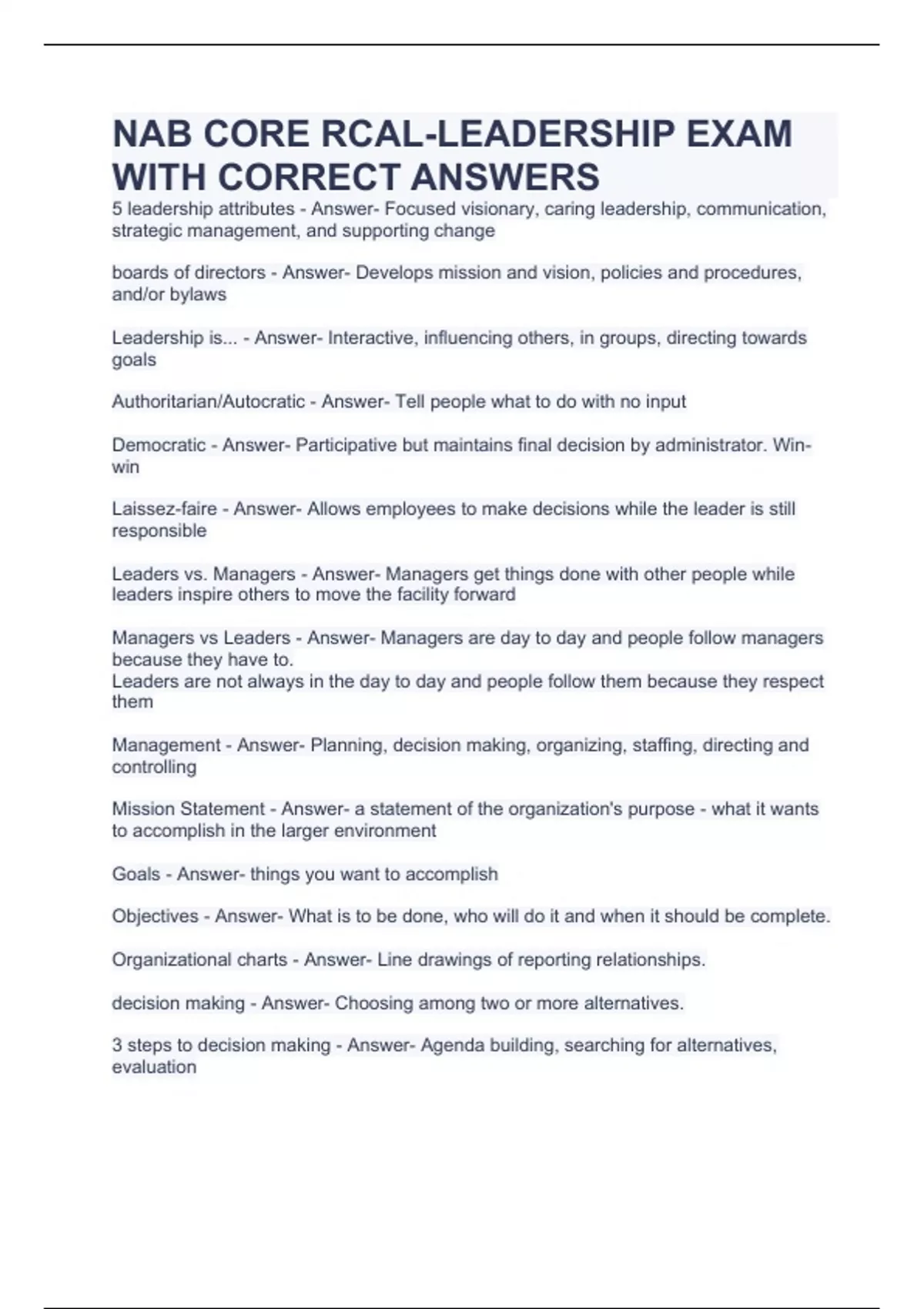 NAB CORE RCAL-LEADERSHIP EXAM WITH CORRECT ANSWERS