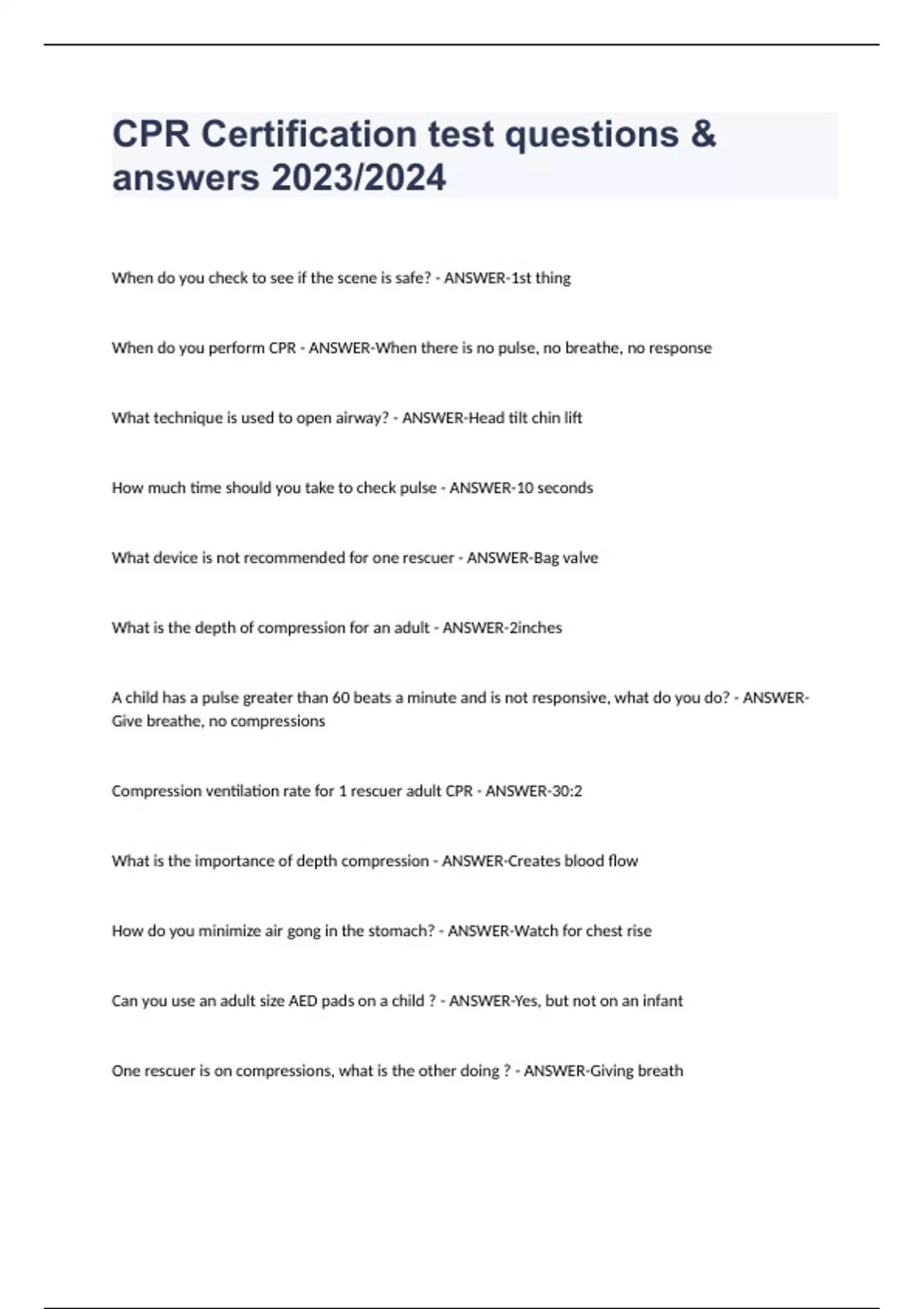 CPR Certification test questions &