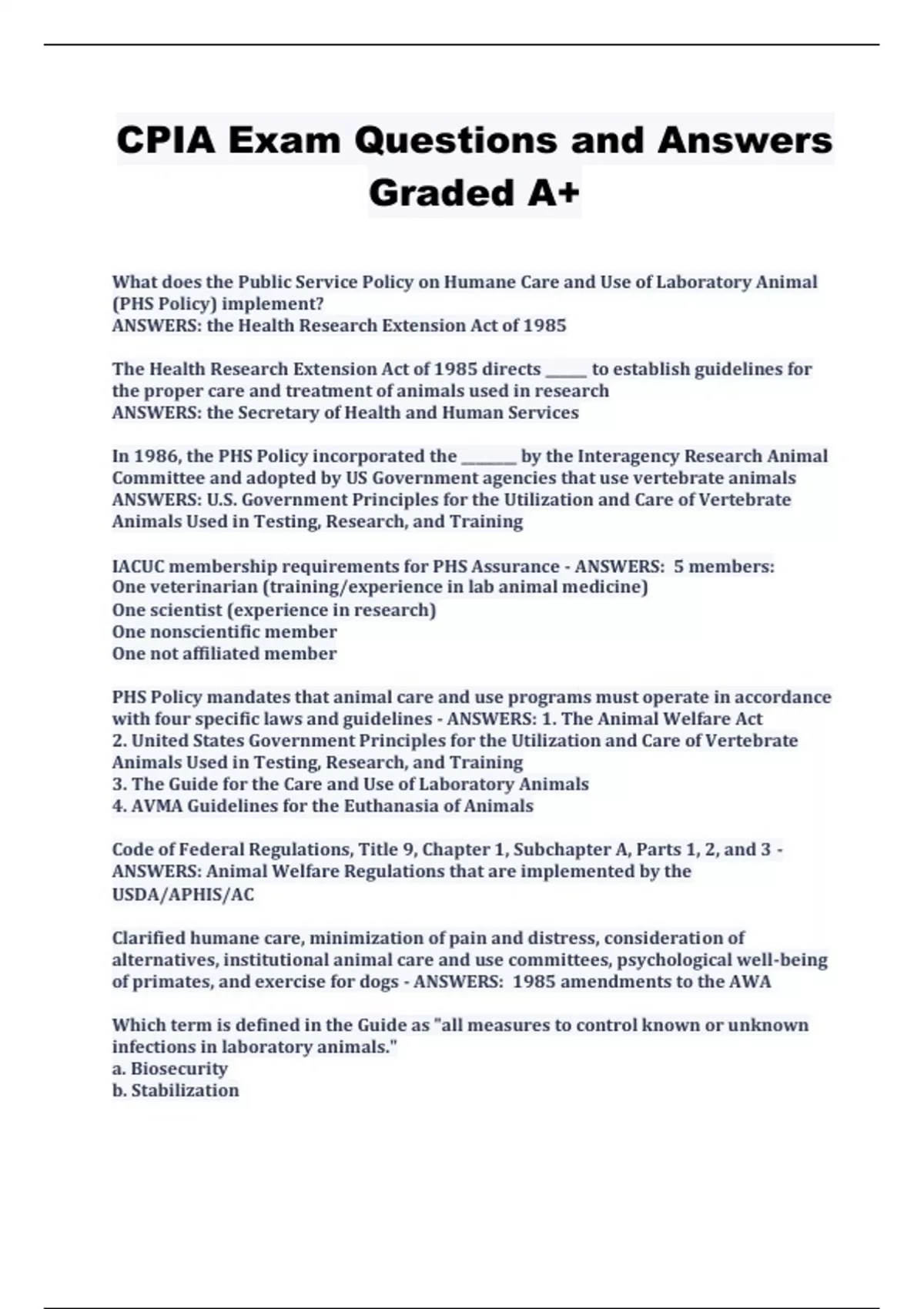 Package Deal For CPIA Exams (100% Verified) Questions and Answers Graded A+