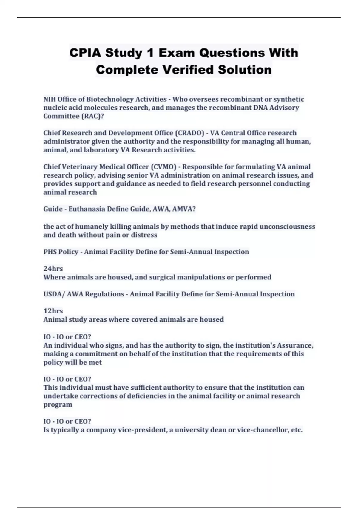 CPIA Study 1 Exam Questions With Complete Verified Solution