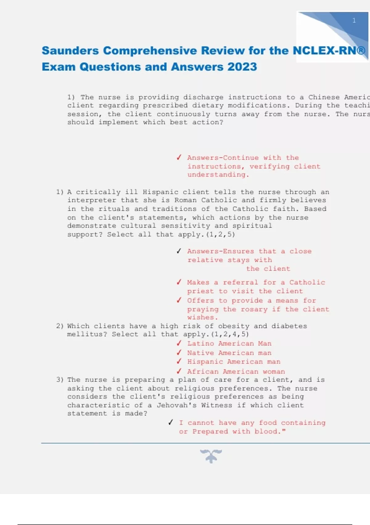 Saunders Comprehensive Review for the NCLEX-RN® Exam Questions and Answers 2023