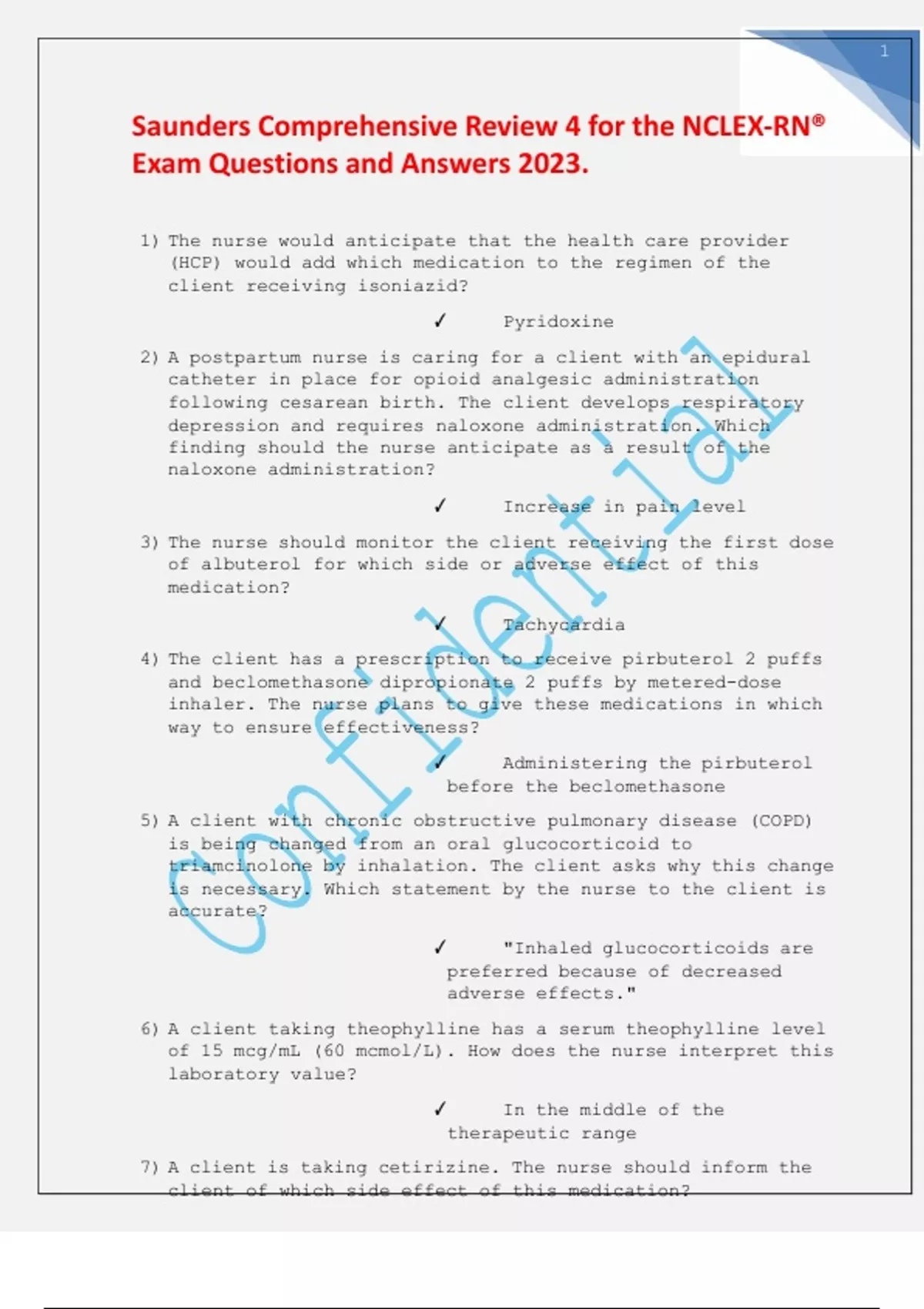 Saunders Comprehensive Review 4 for the NCLEX-RN® Exam Questions and Answers 2023.