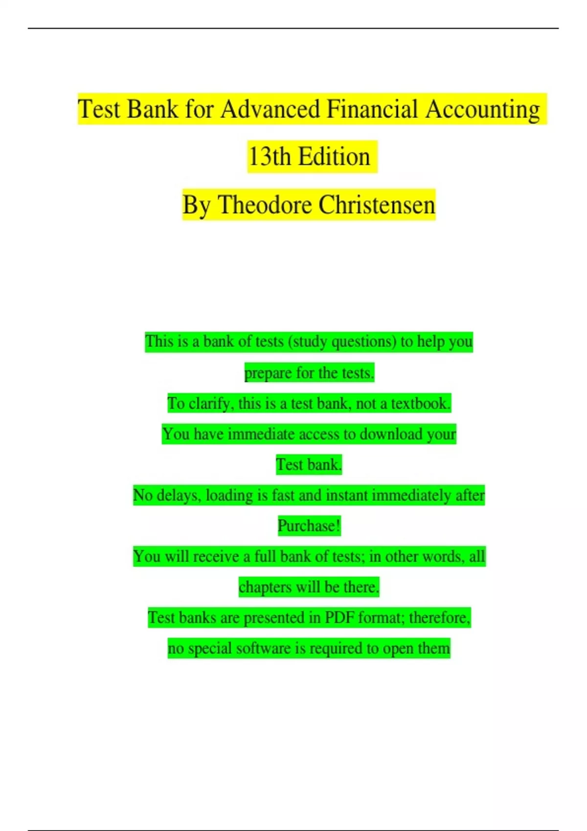 TEST BANK - Advanced Financial Accounting 13th Edition By Christensen, Cottrell & Budd, All Chapters 1 - 20 Complete, 100 % Verified