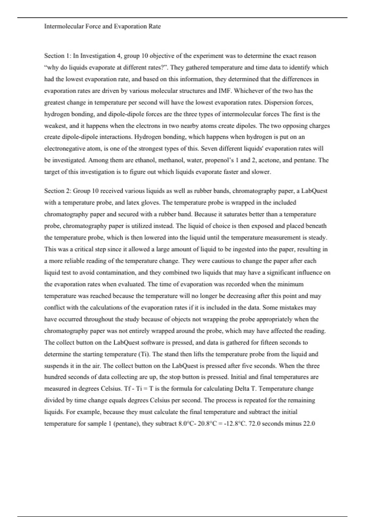 lab report based on Why do liquids evaporate at different rates?”.