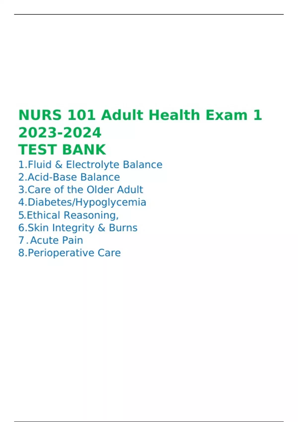 NURS 101 Adult Health Exam TEST BANK