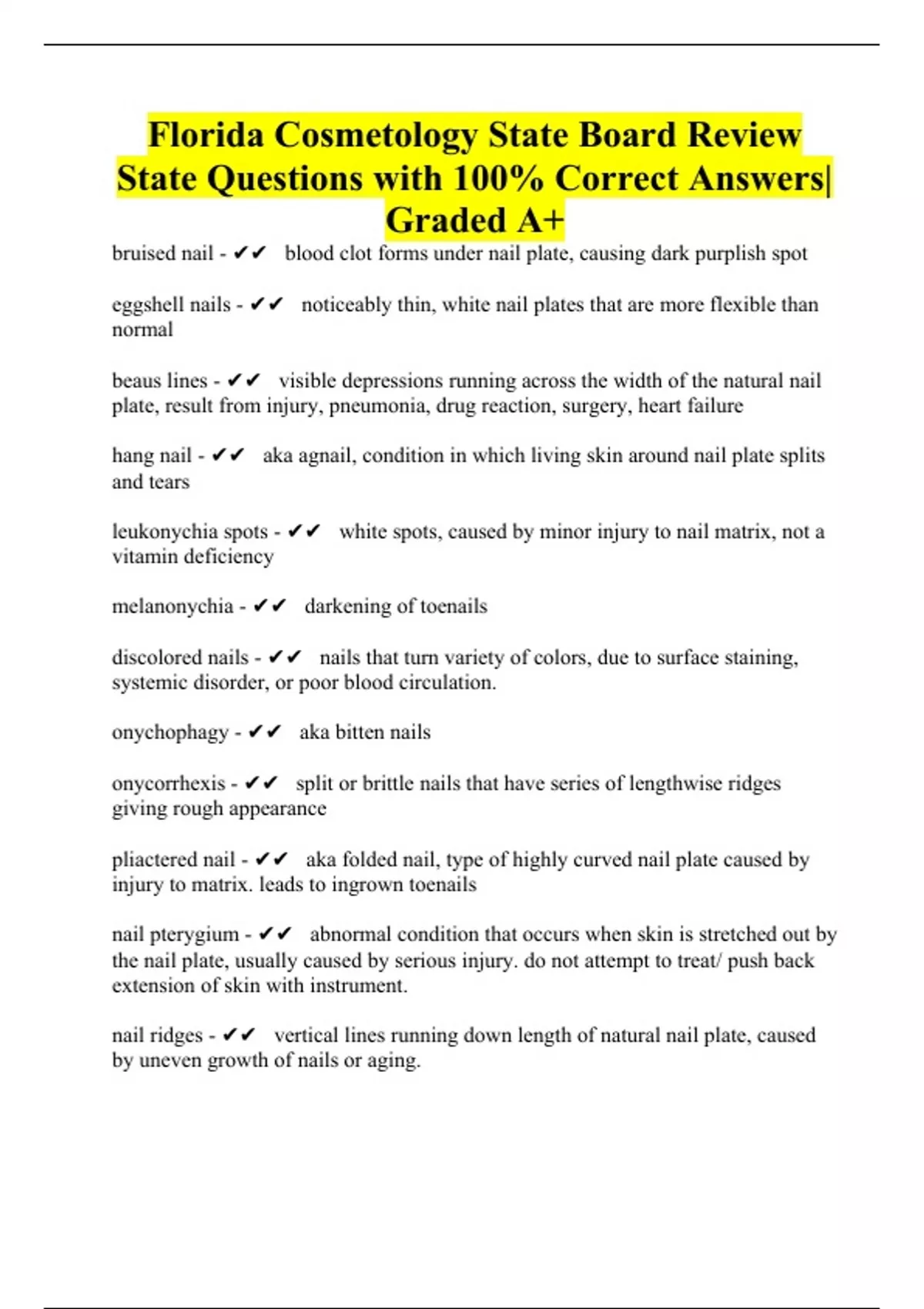 Florida Cosmetology State Board Review State Questions with 100% Correct Answers| Graded A+