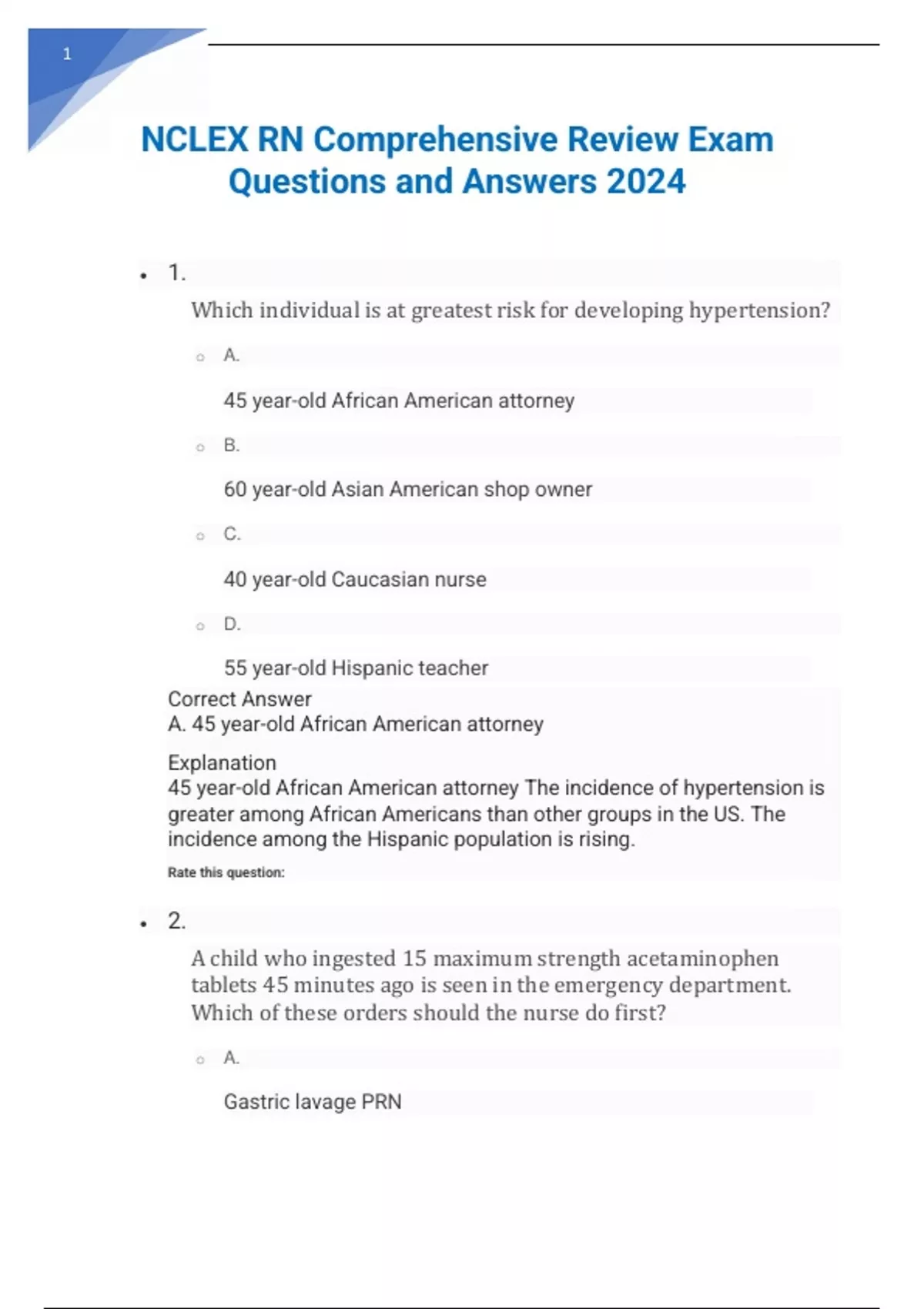 NCLEX RN Comprehensive Review Exam Questions and Answers 2024