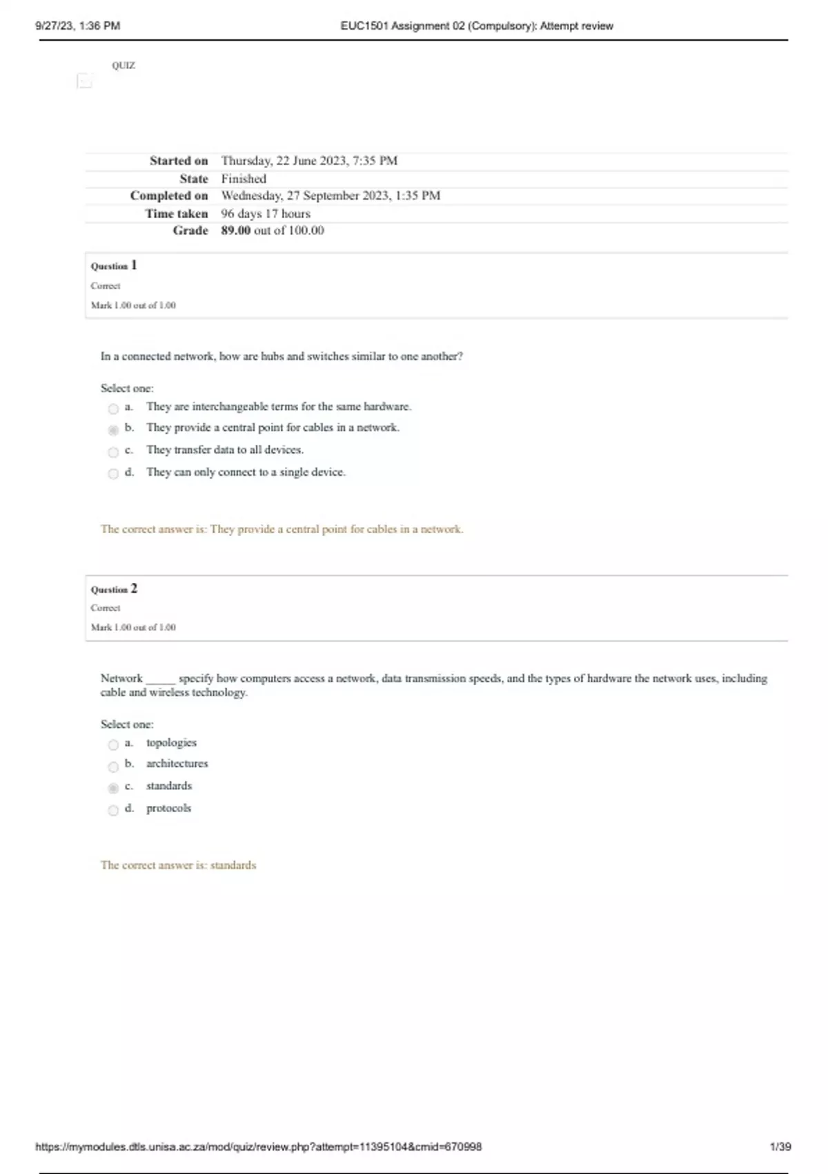 , 9/27/23, 1:36 PM EUC1501 Assignment 02 (Compulsory): Attempt review