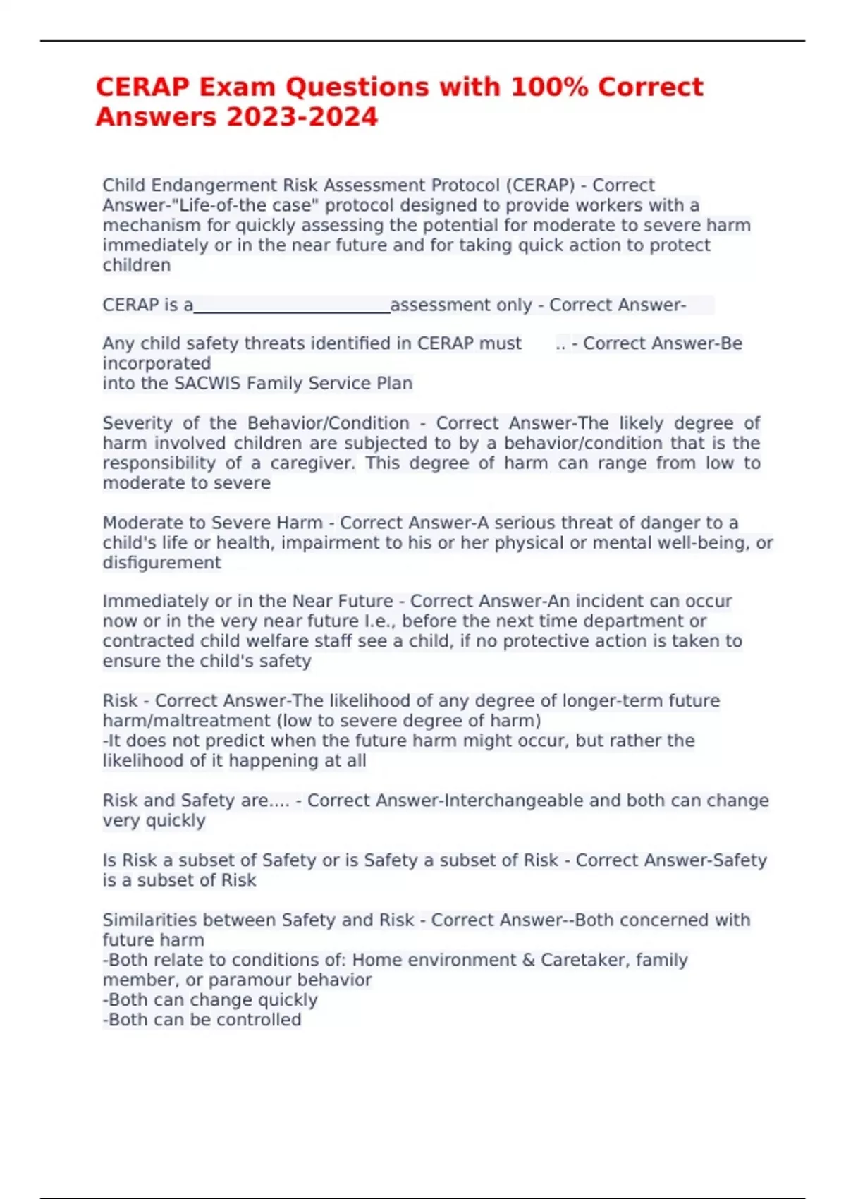 CERAP Exam Questions with 100% Correct Answers