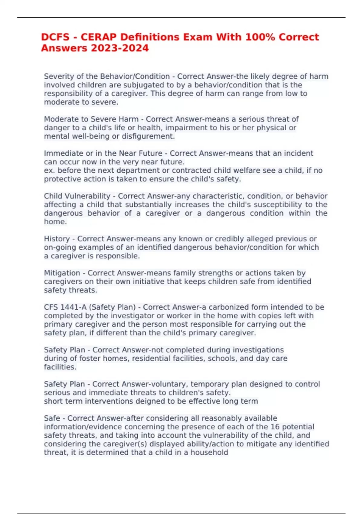 dcfs cerap definitions exam with 100 correct an