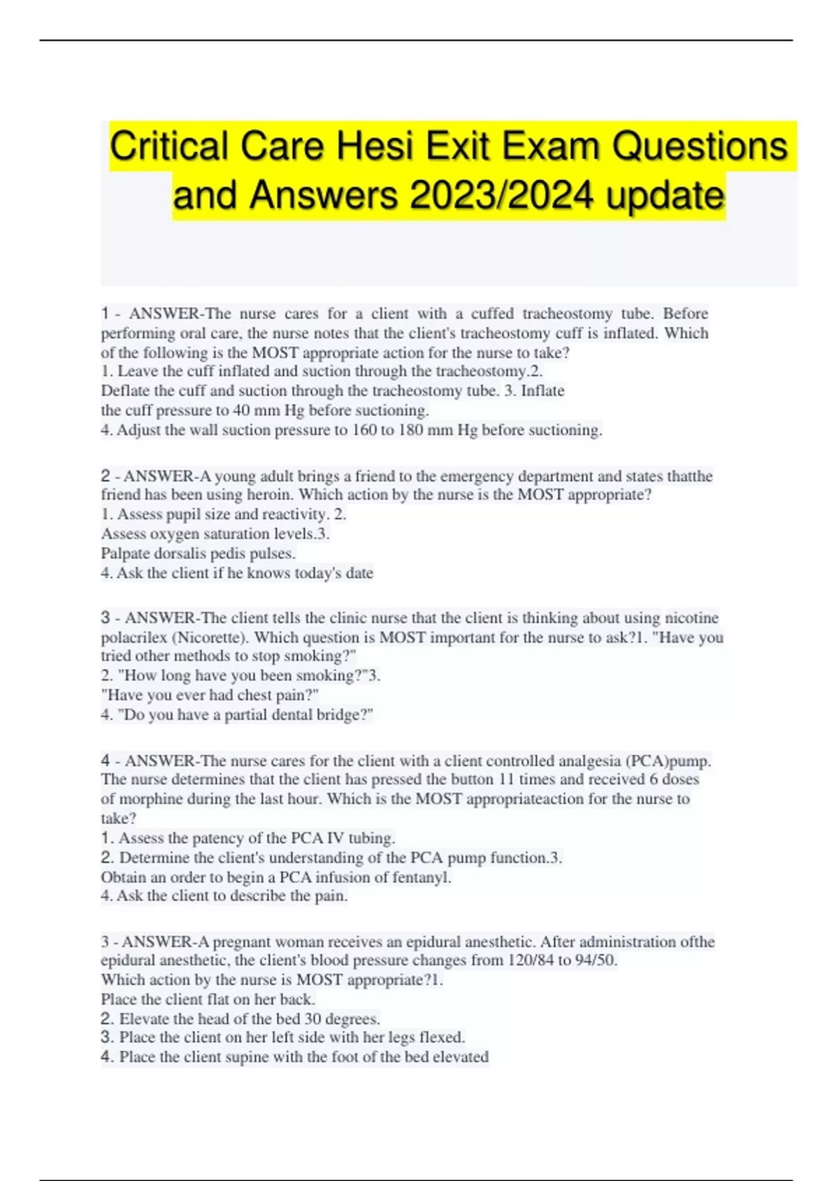 Critical Care Hesi Exit Exam Questions and Answers 2023/2024 update