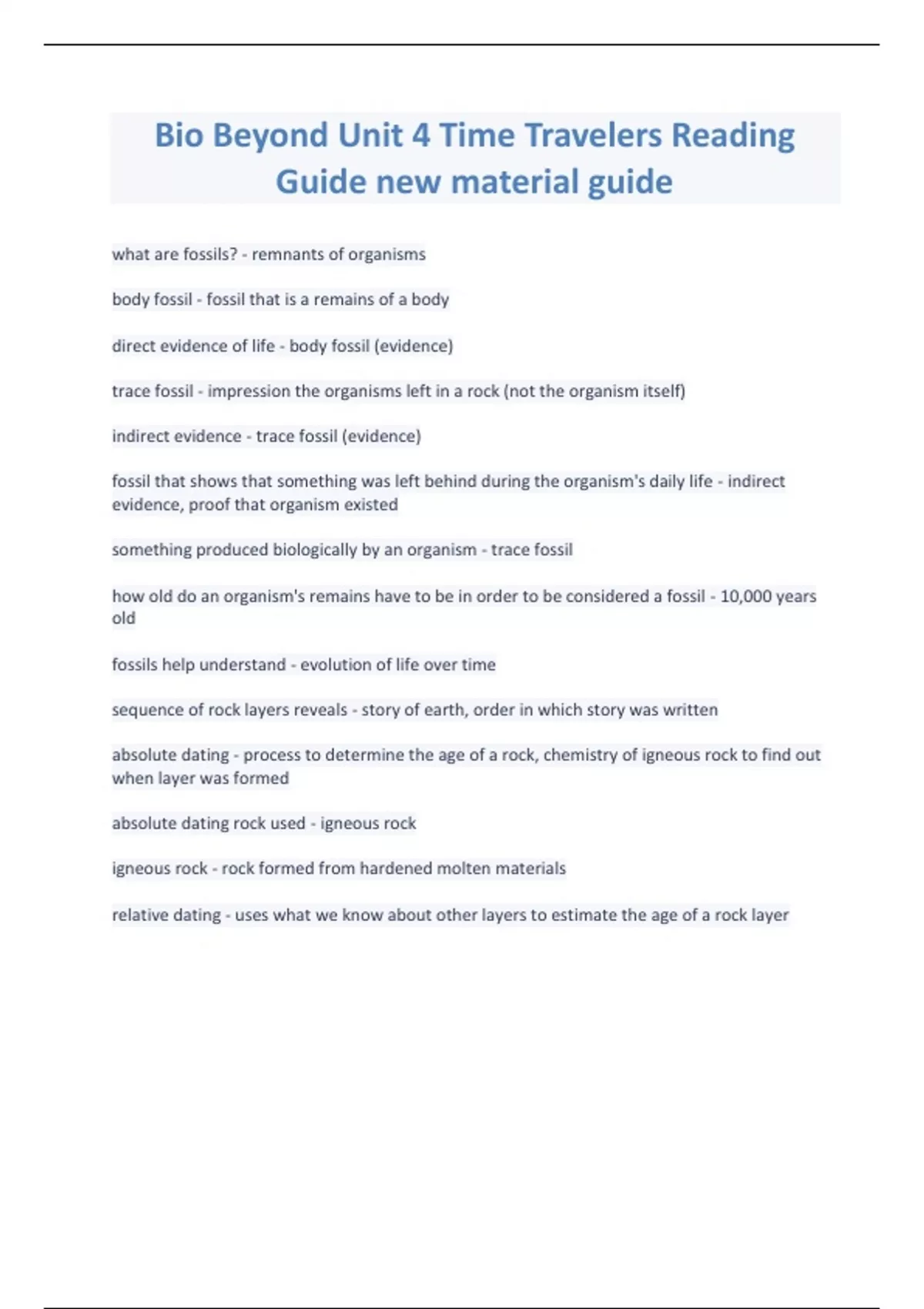 Bio Beyond Unit 4 Time Travelers Reading Guide new material guide