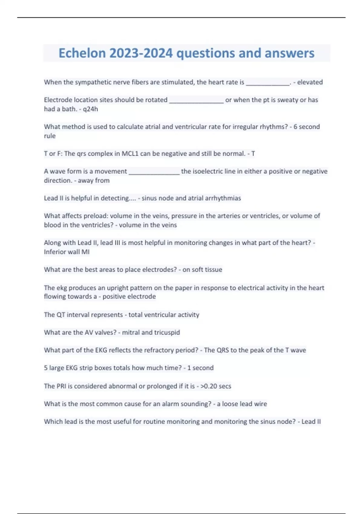 Echelon questions and answers.