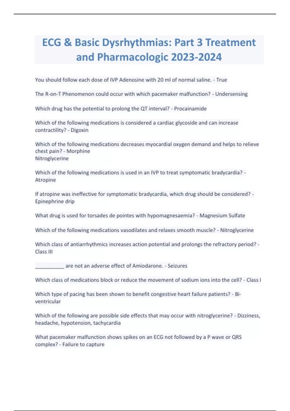 ECG & Basic Dysrhythmias Part 3 Treatment and Pharmacologic
