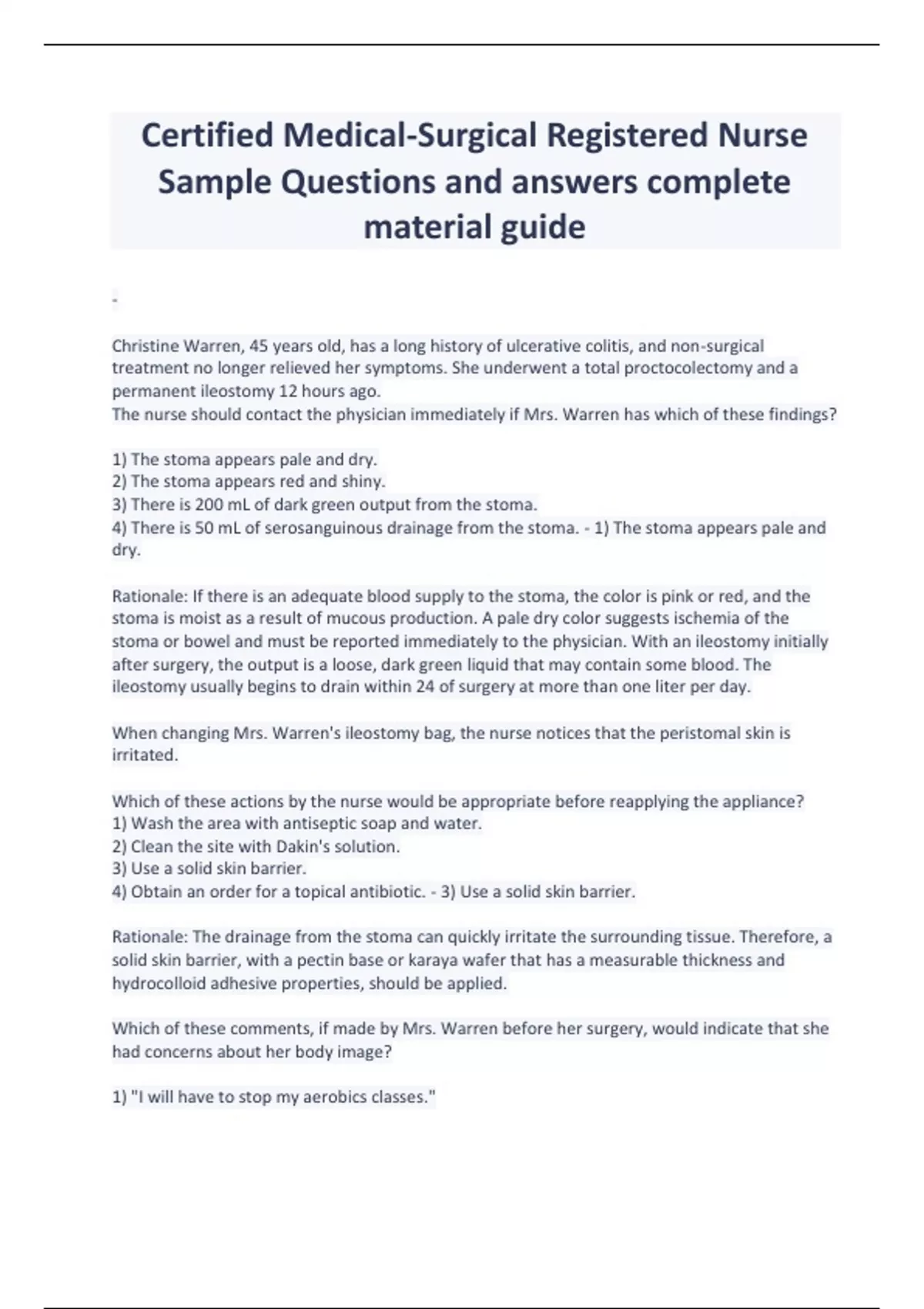 Certified Medical-Surgical Registered Nurse Sample Questions and answers complete material guide