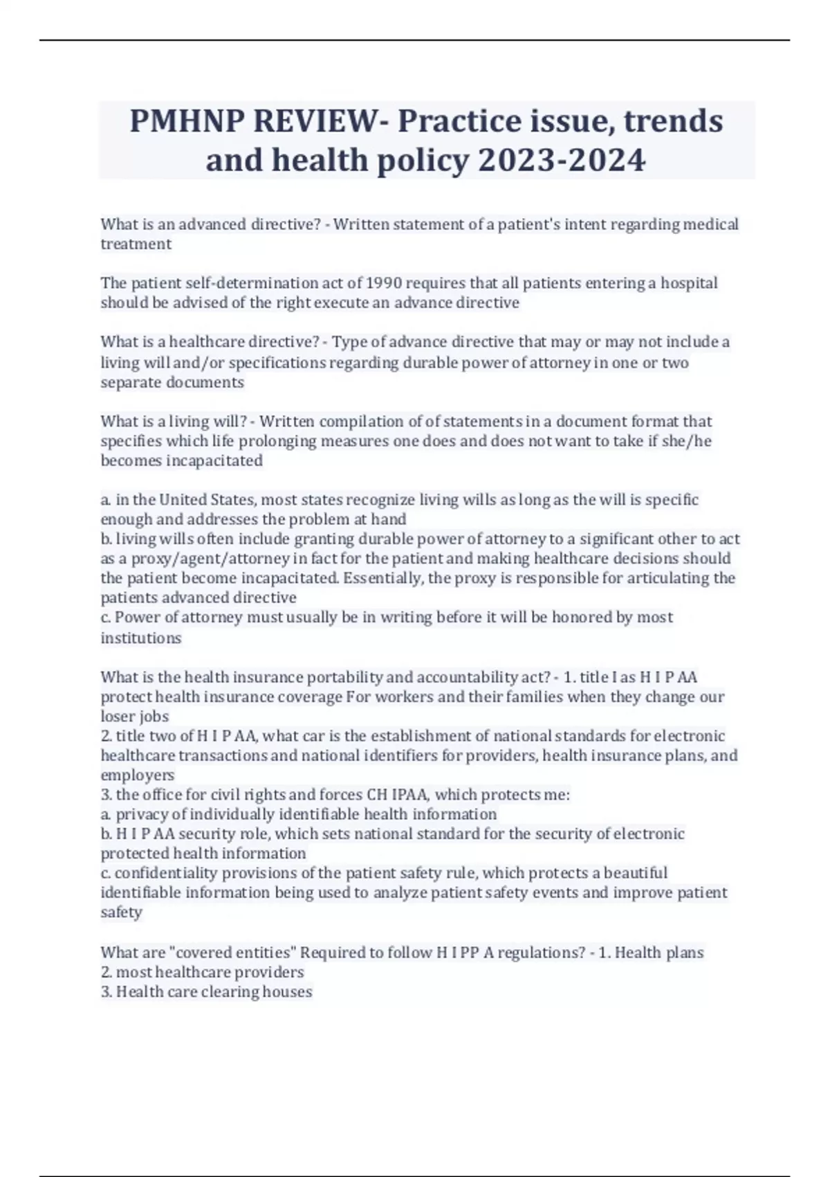 PMHNP REVIEW- Practice issue, trends and health policy